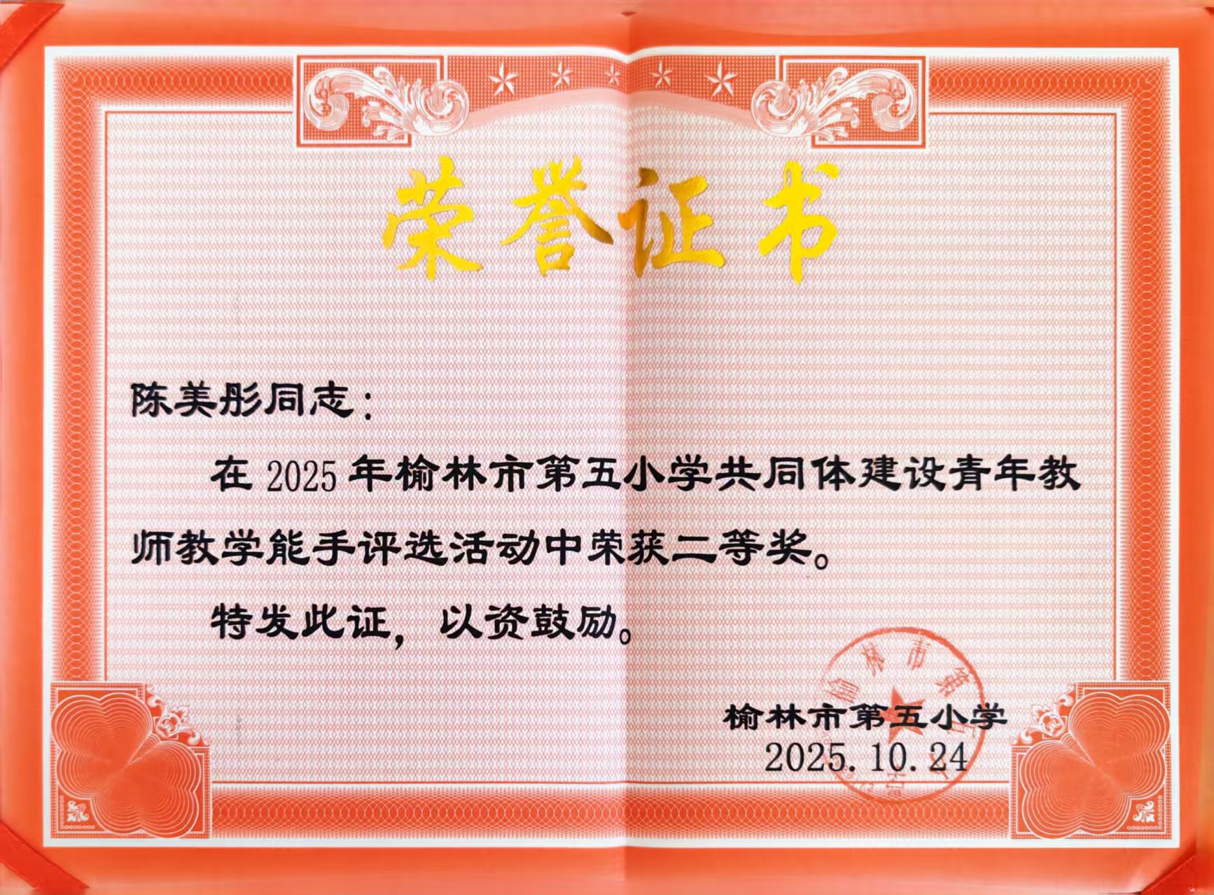 2025年10月24日 荣获 2025教学能手 学校级 二等