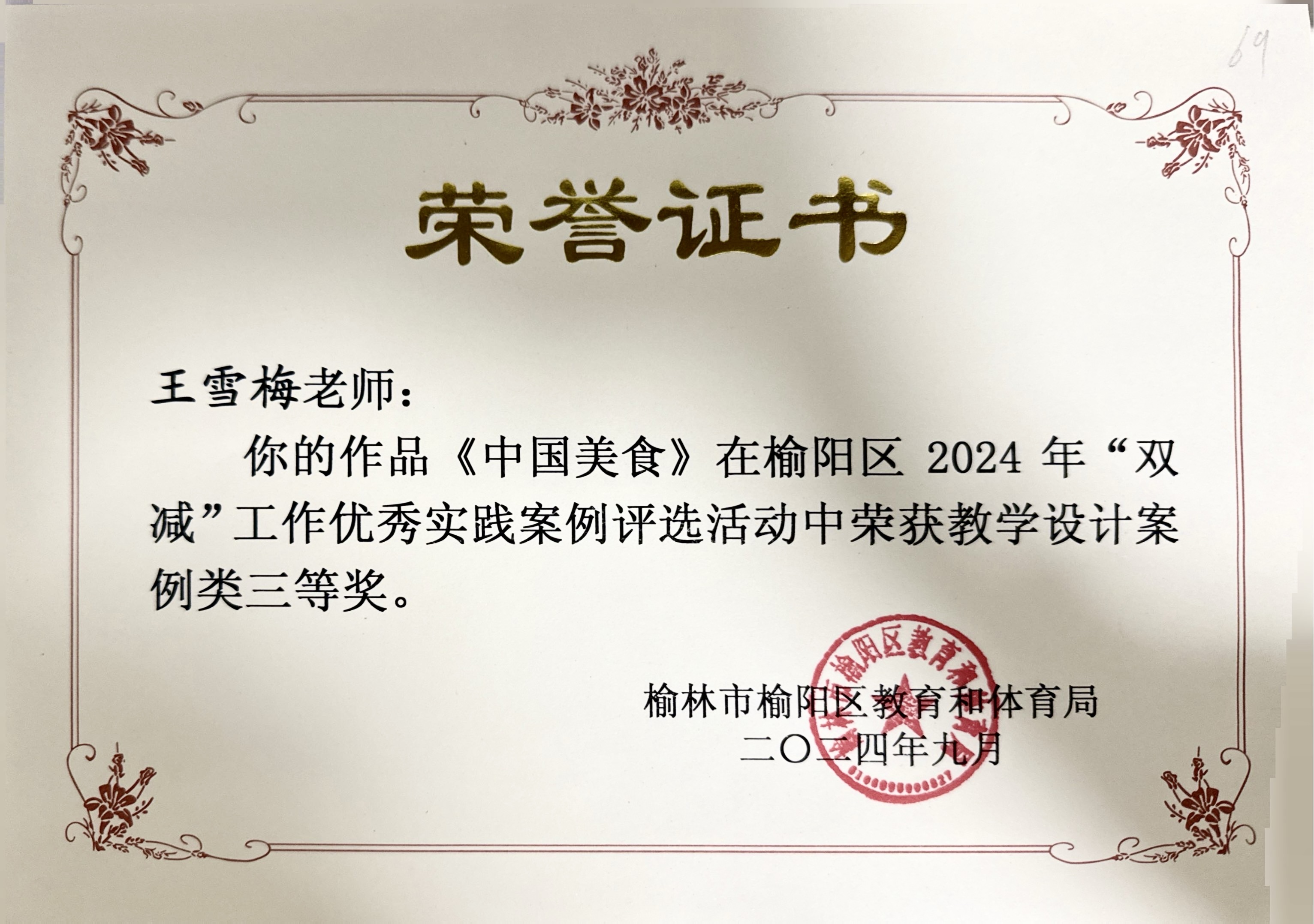 2024年09月29日 荣获 榆阳区2024年“双减”工作优秀实践案例评选活动 县级教育行政部门 三等