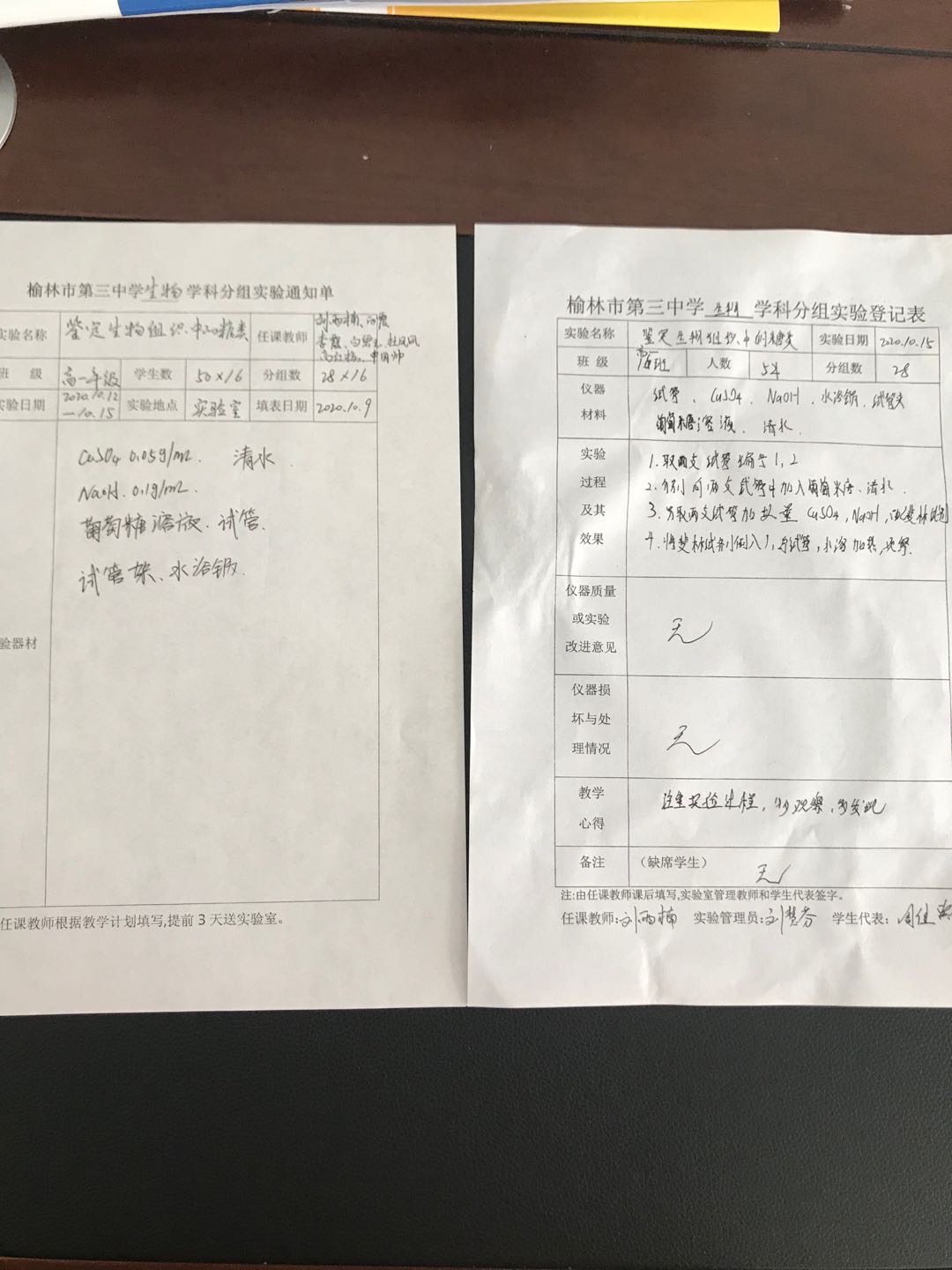 实验登记表