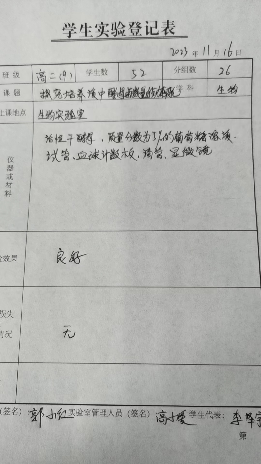 实验登记表
