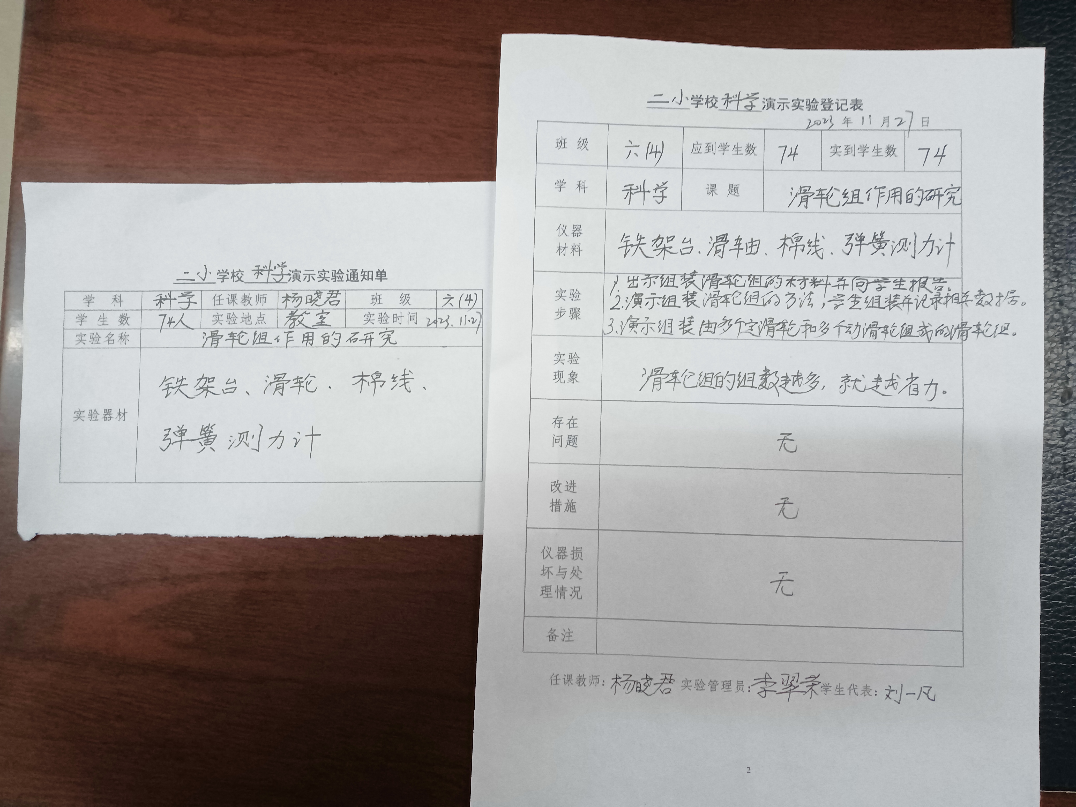 实验登记表