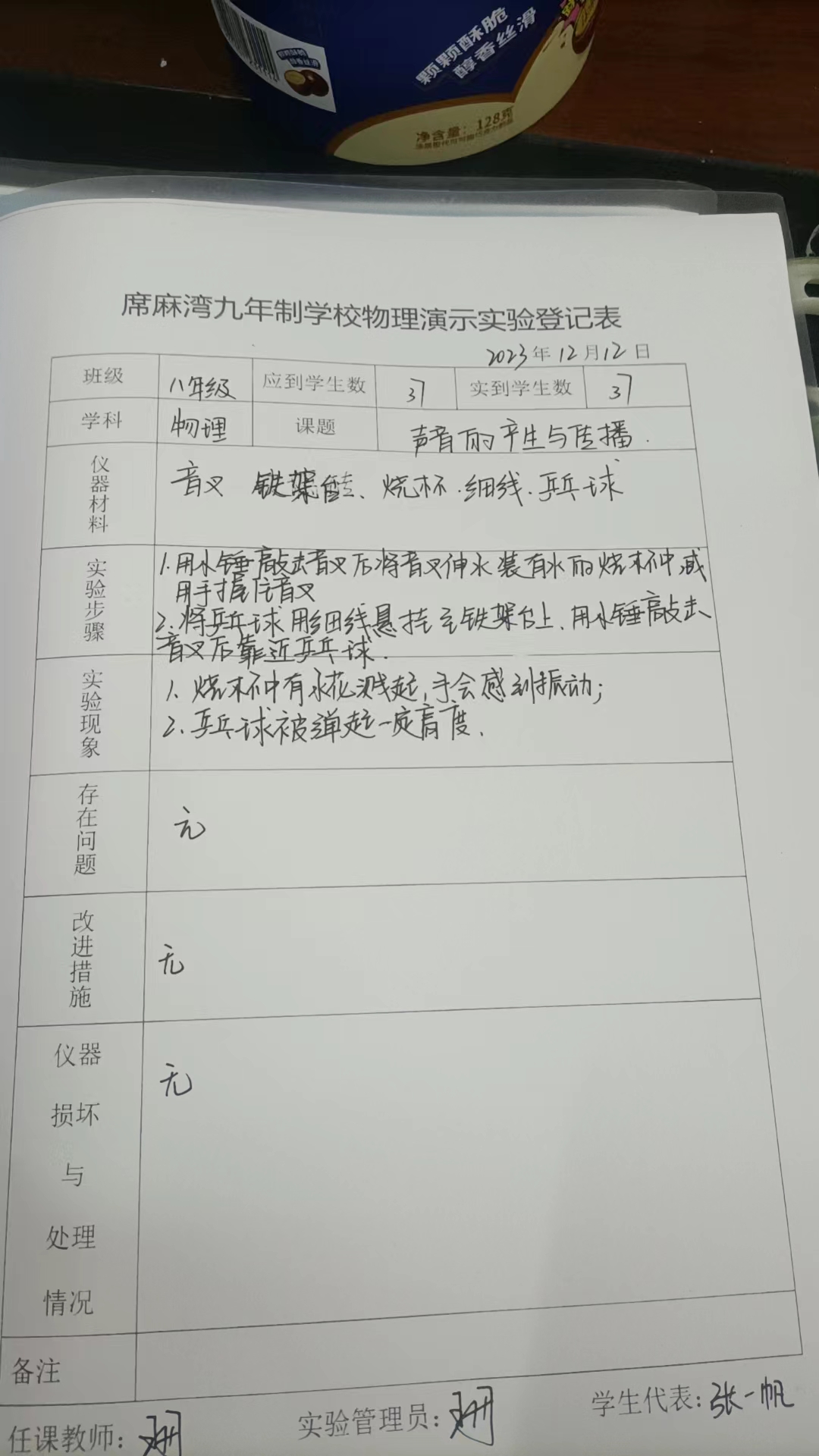 实验登记表