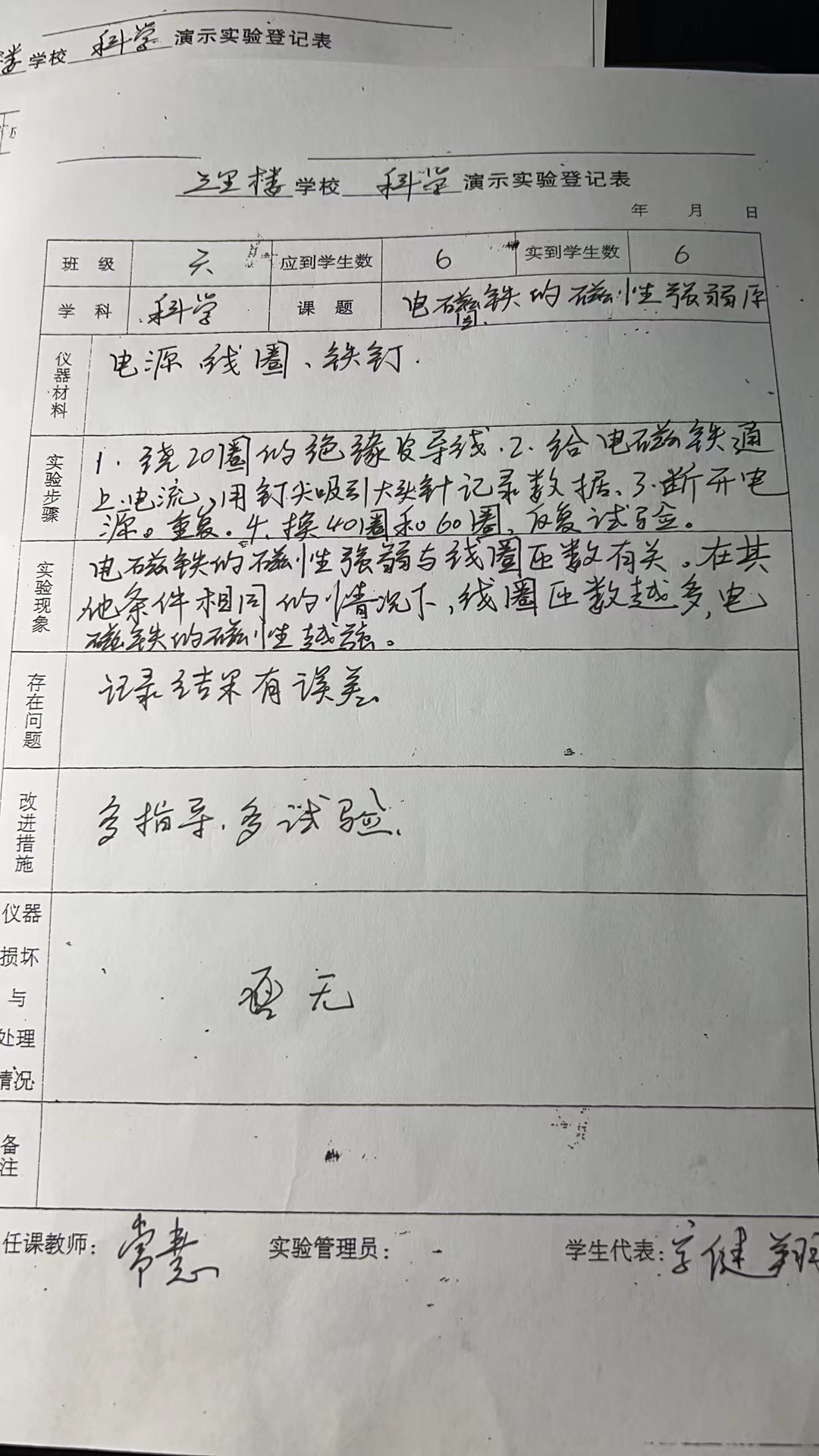 实验登记表