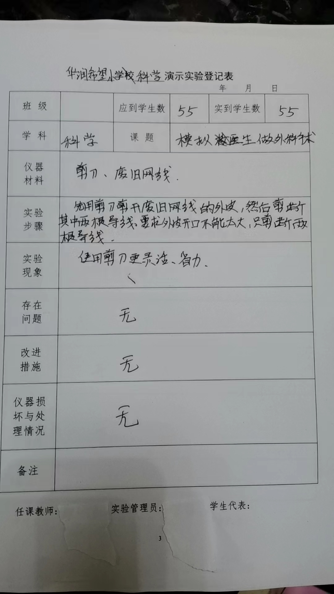 实验登记表