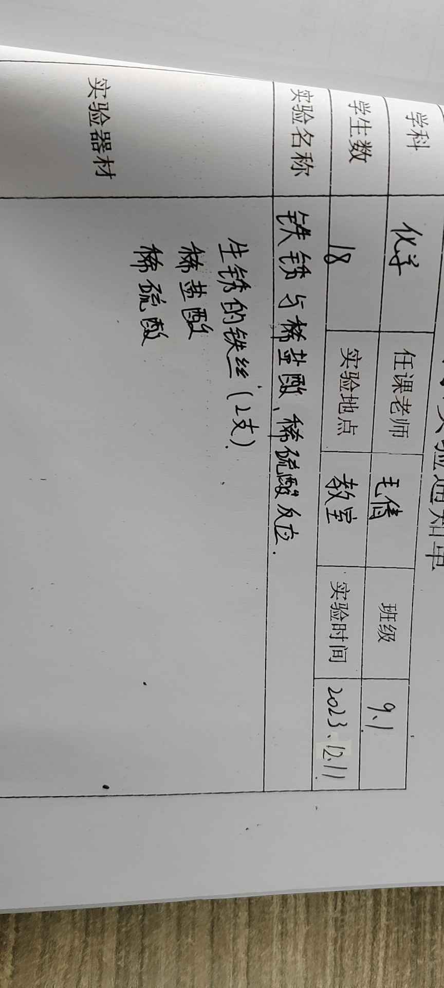 实验登记表