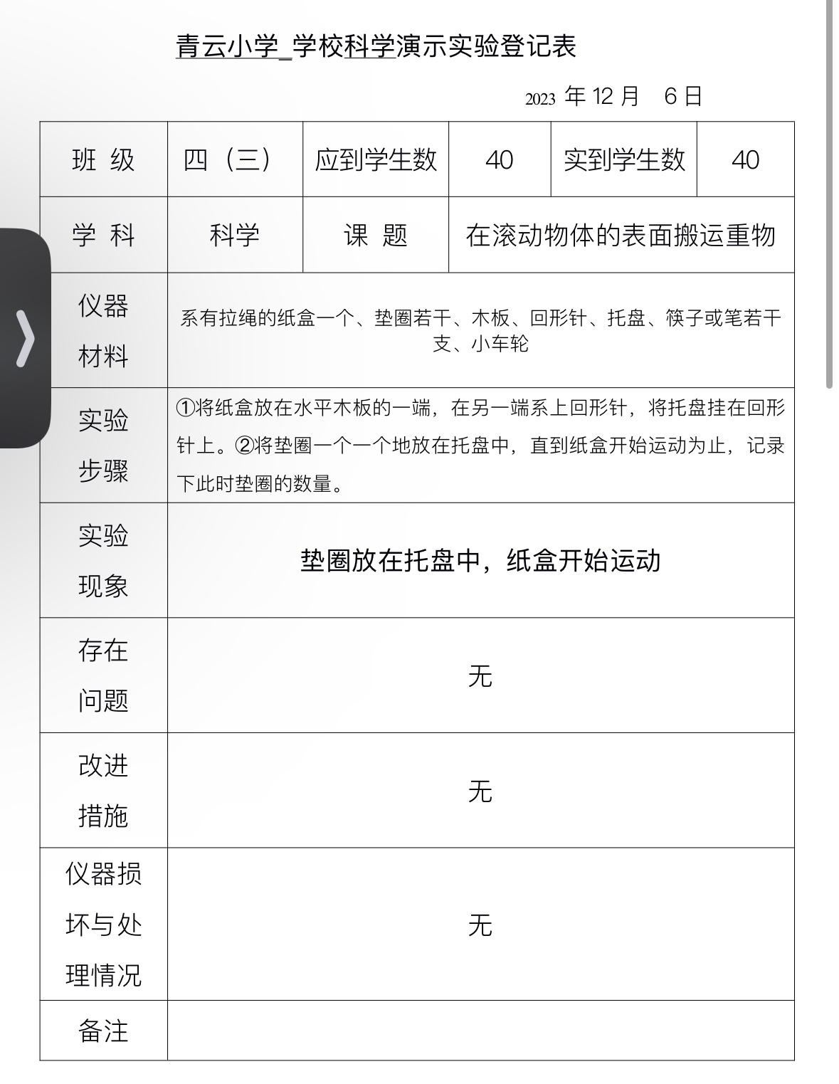 实验登记表