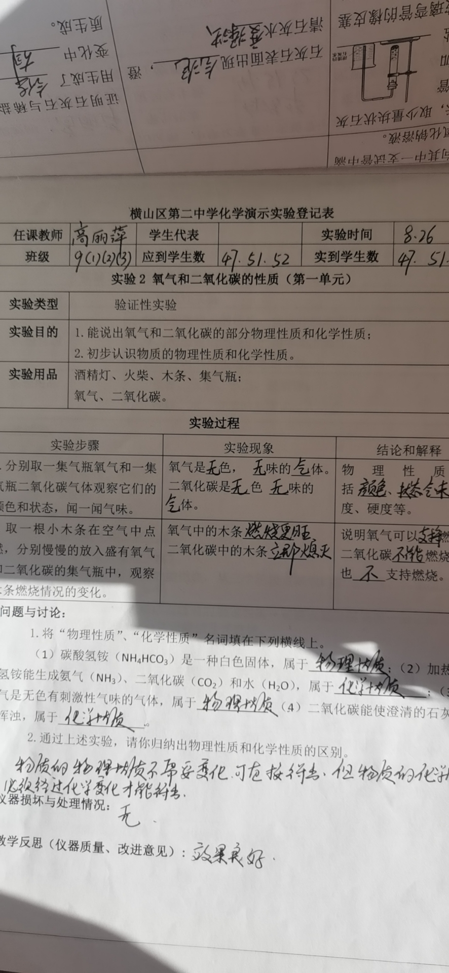 新版上册-第一单元>实验1-1>氧气和二氧化碳的性质