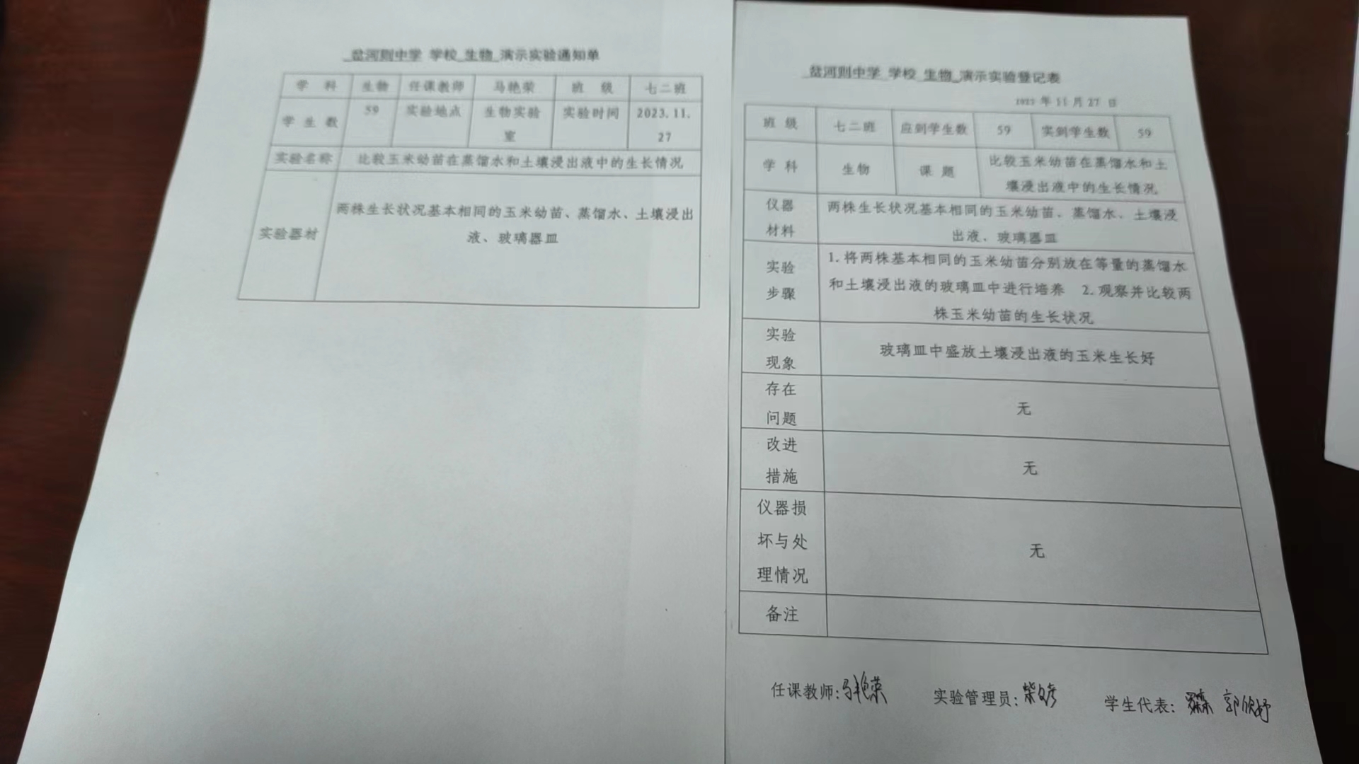 实验登记表