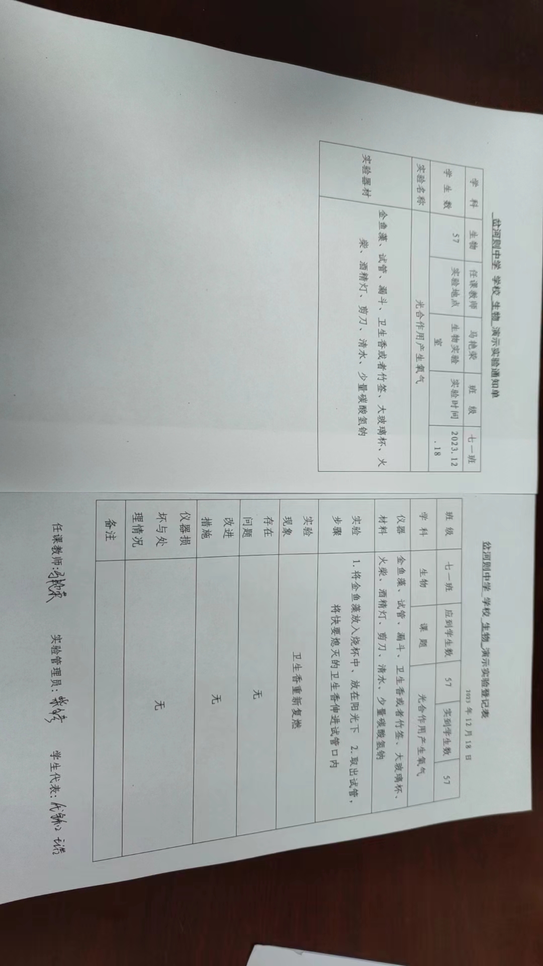 实验登记表