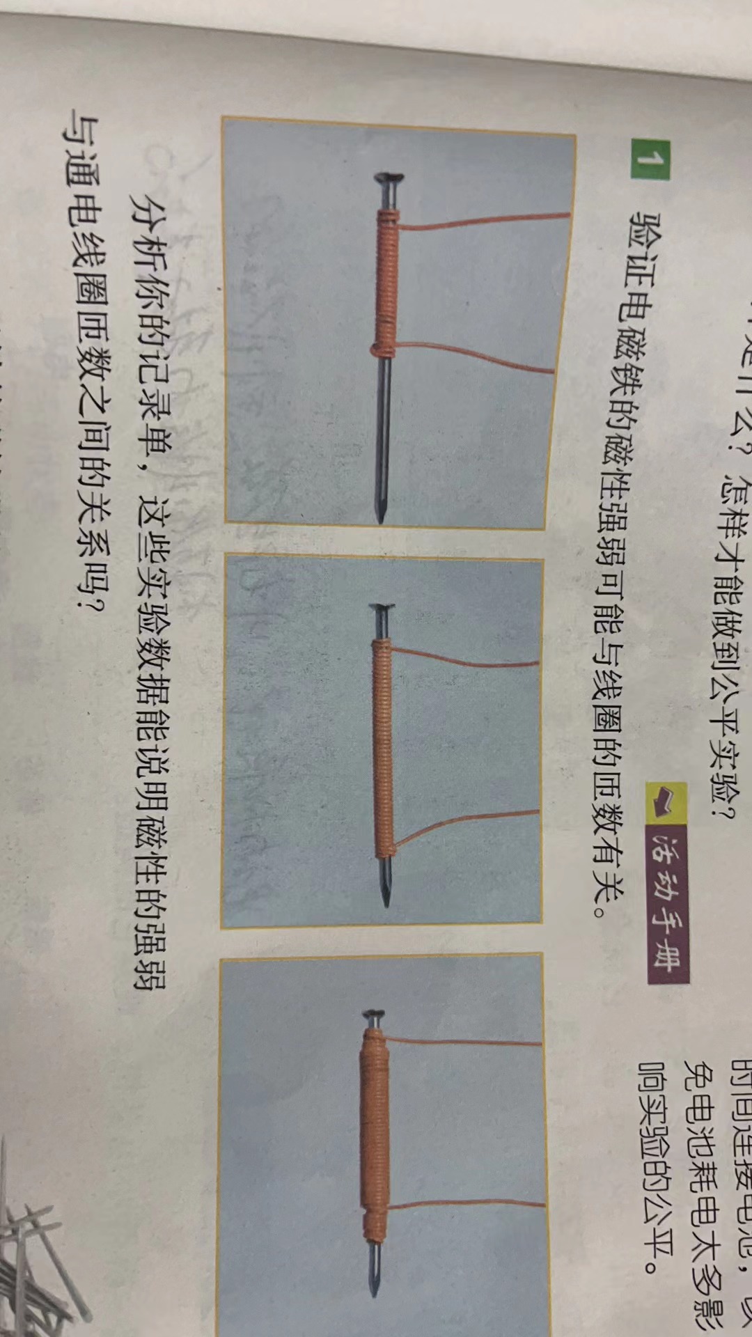上册-第三章>第三节>3.3电磁铁磁力大小与线圈圈数的关系