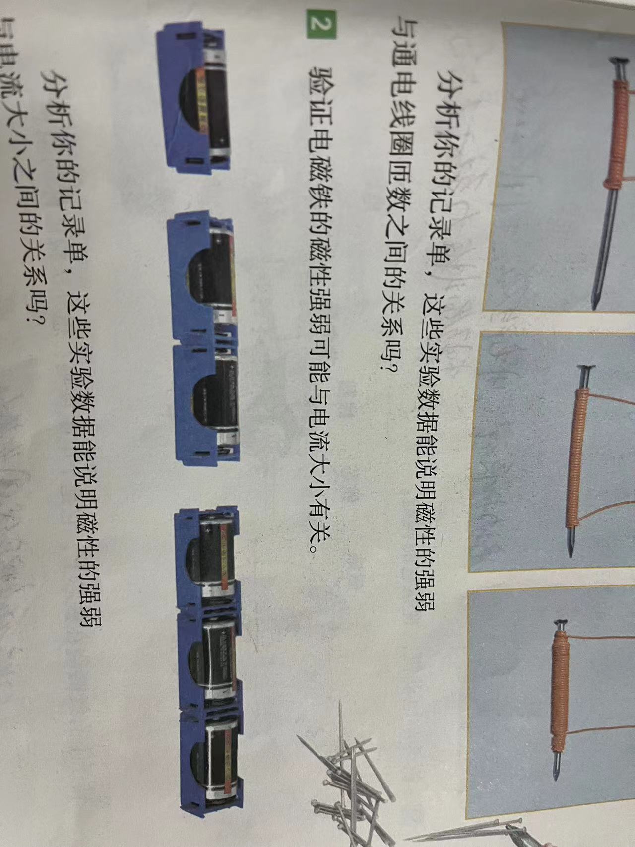 上册-第三章>第四节>3.4电磁铁磁力大小与电池节数的关系