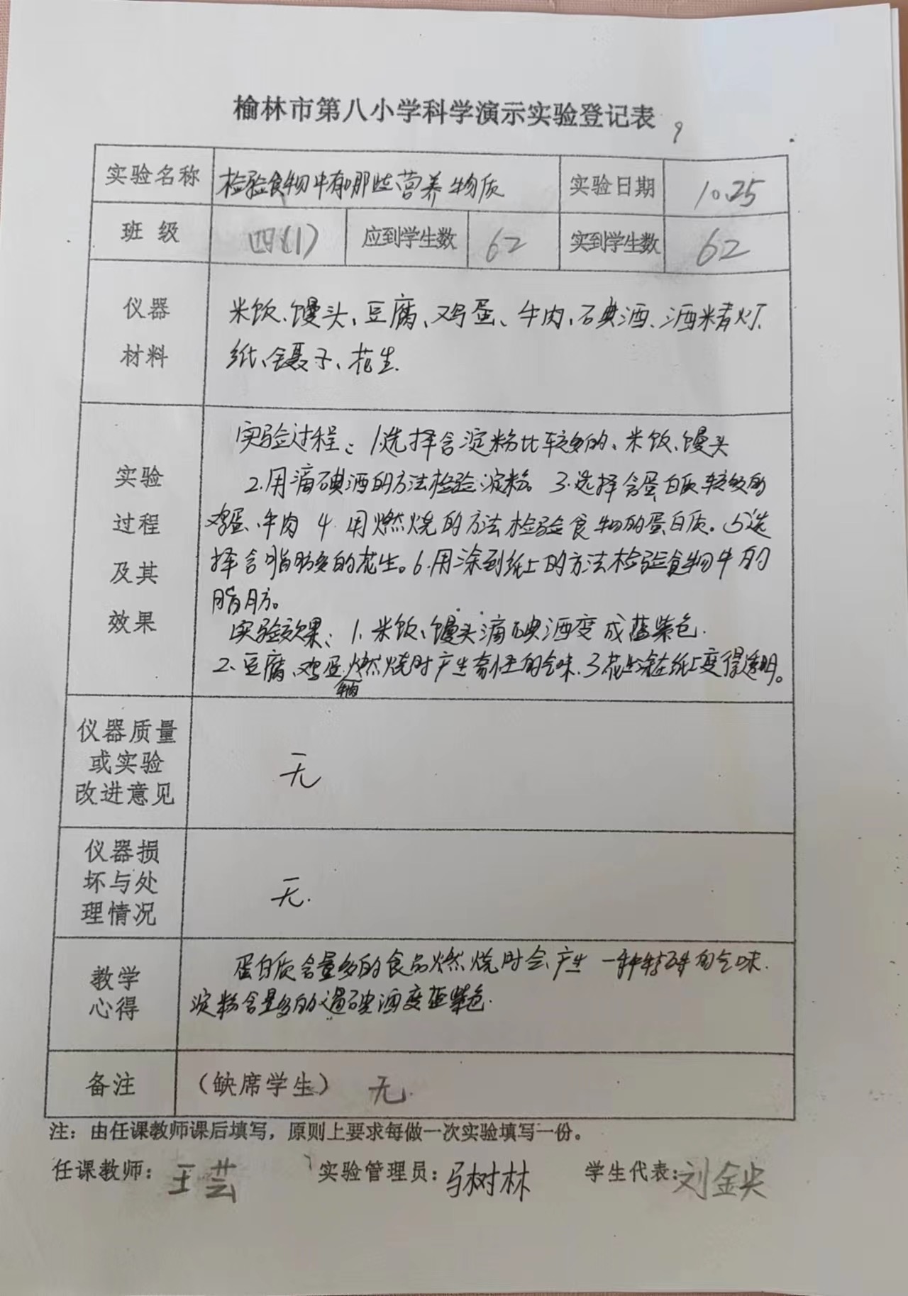 实验登记表