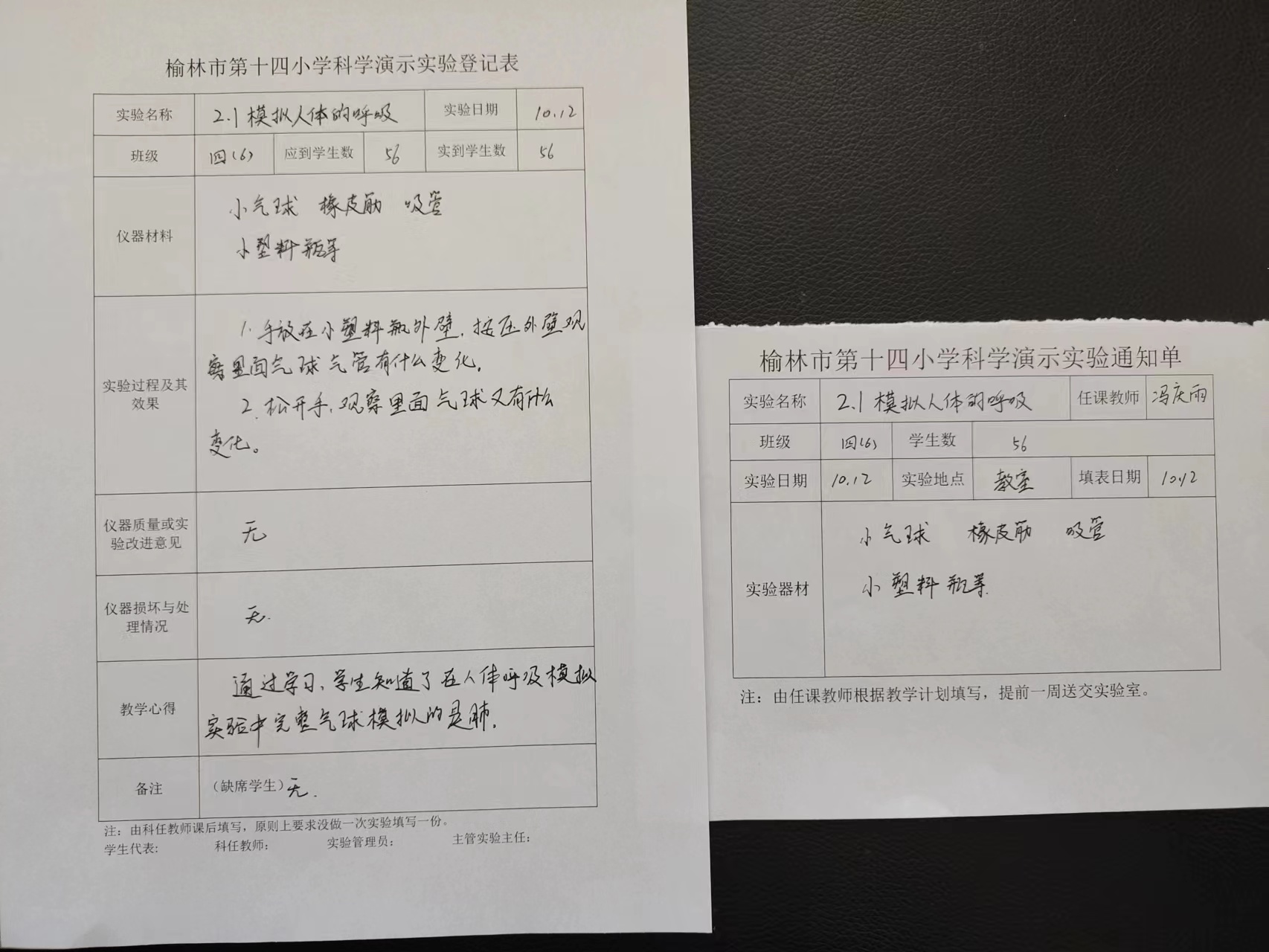 实验登记表