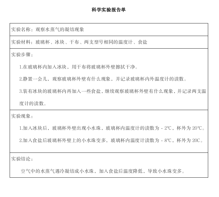 观察水蒸气的凝结现象