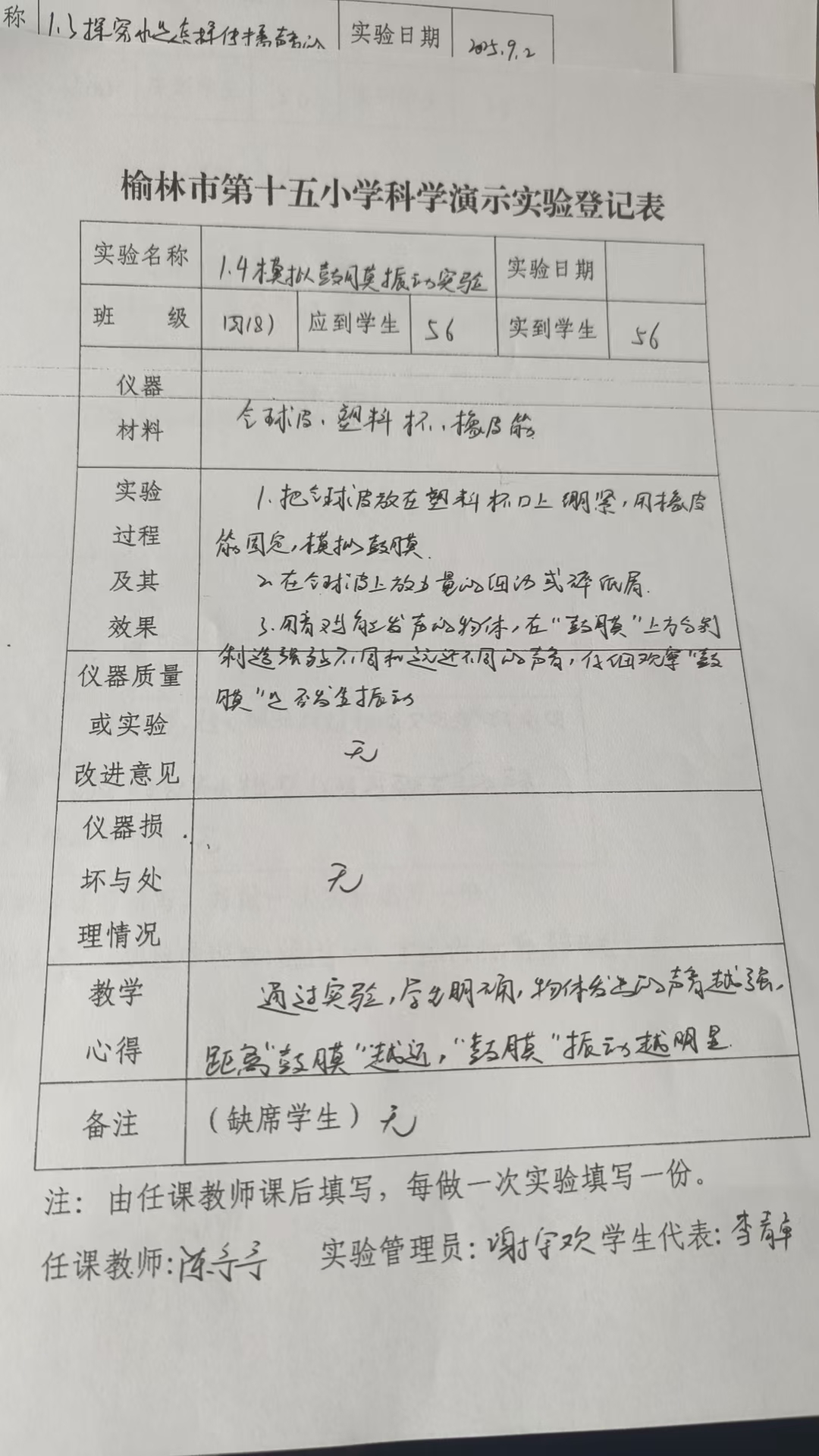实验登记表