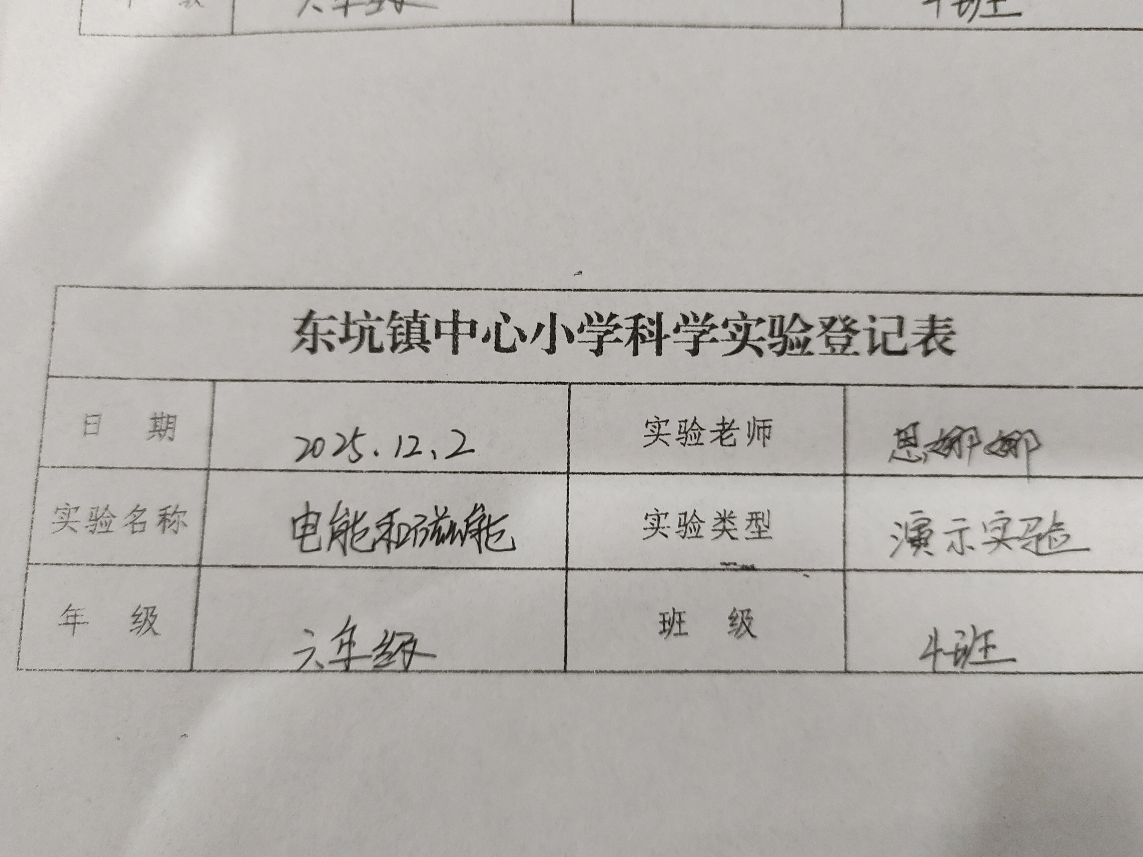 实验登记表