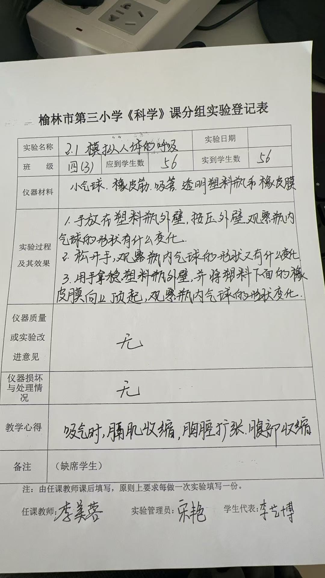 实验登记表