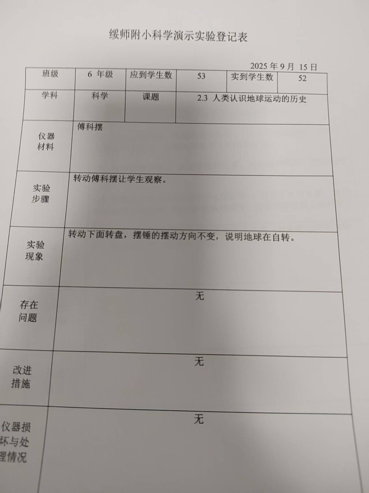 实验登记表