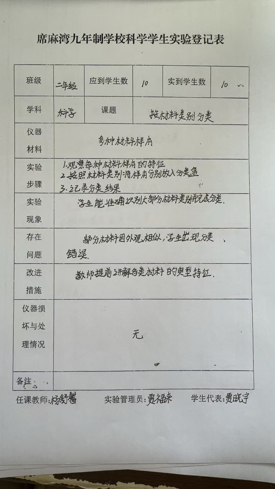 实验登记表