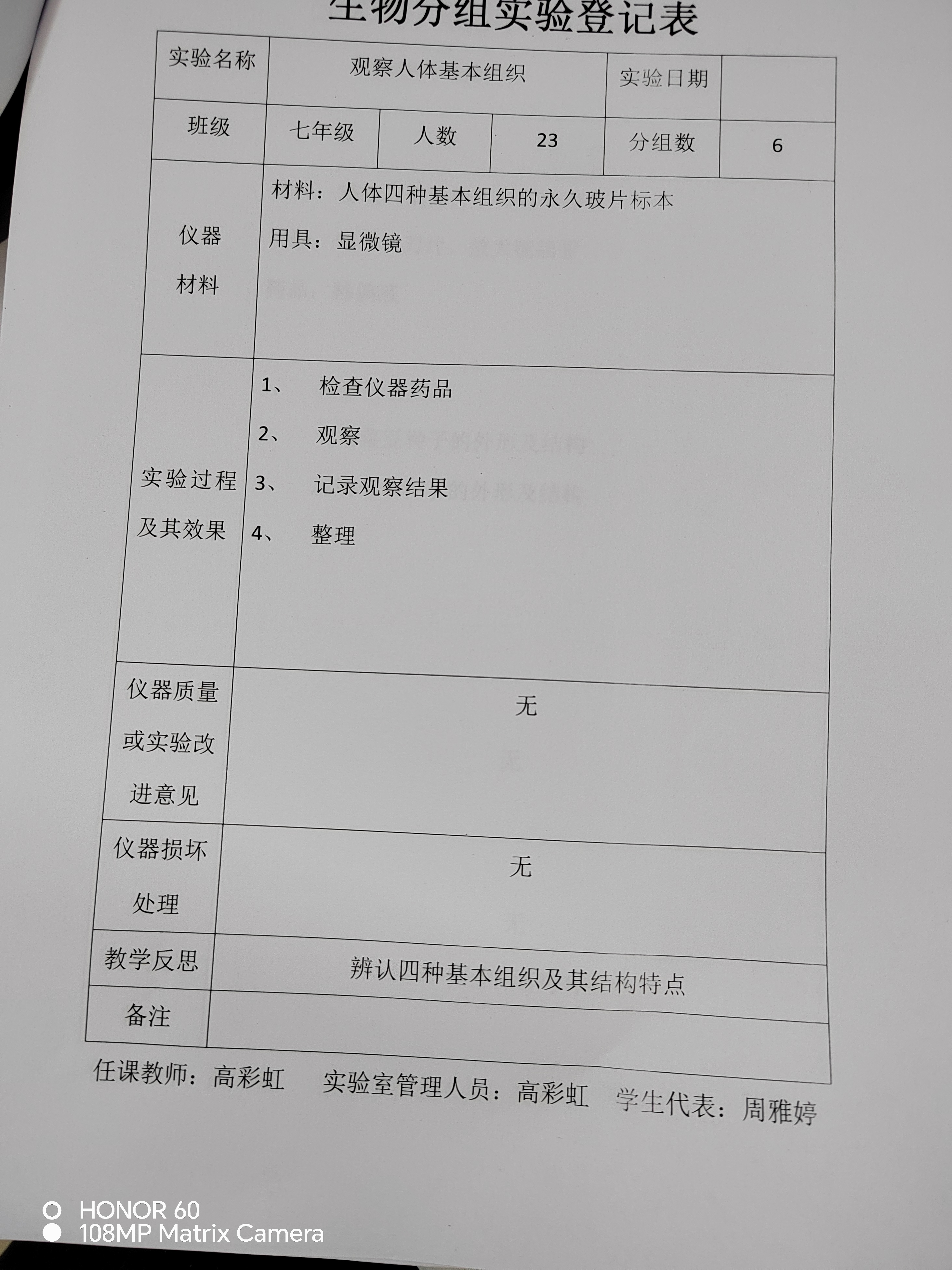 实验登记表