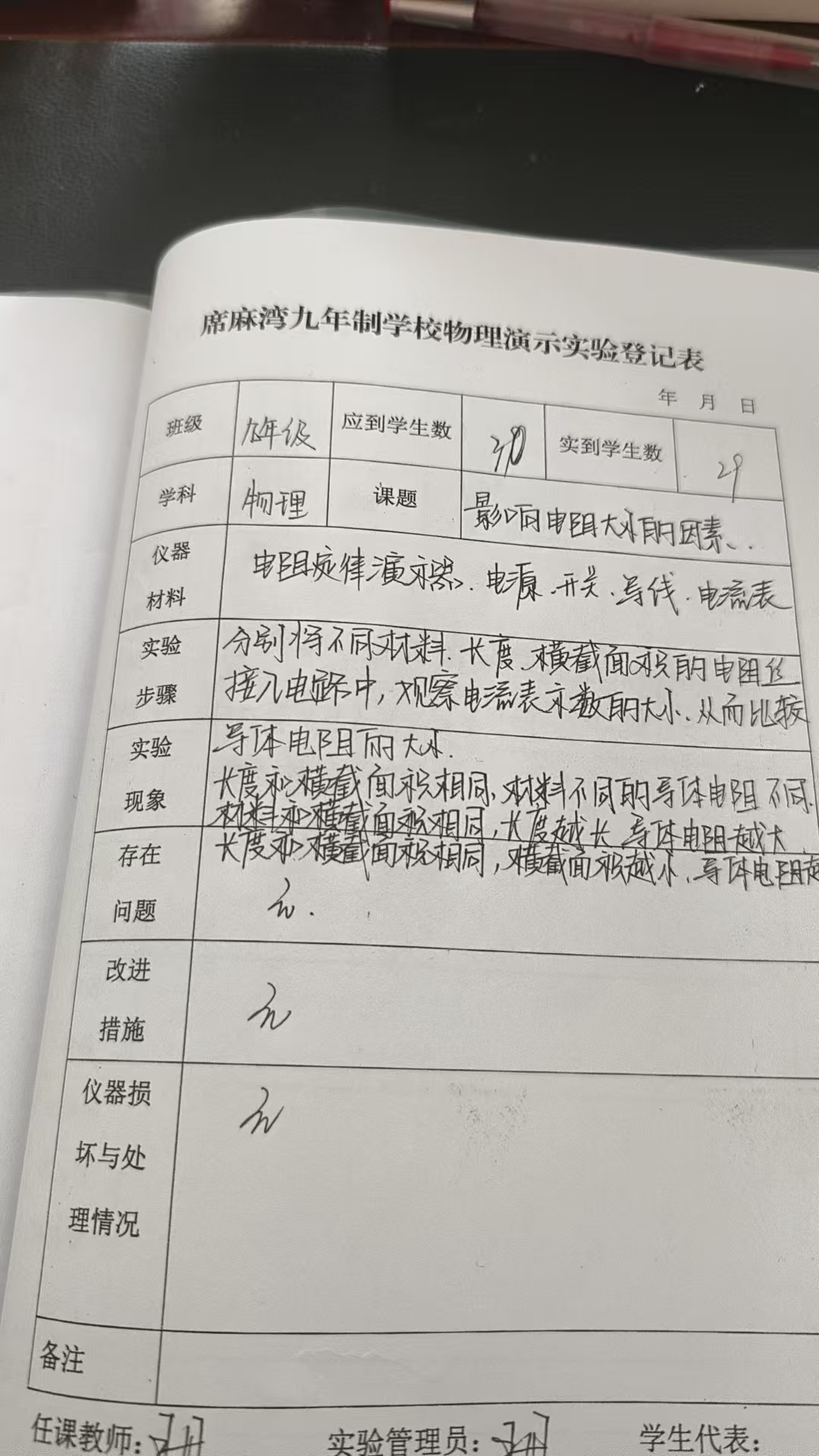 实验登记表