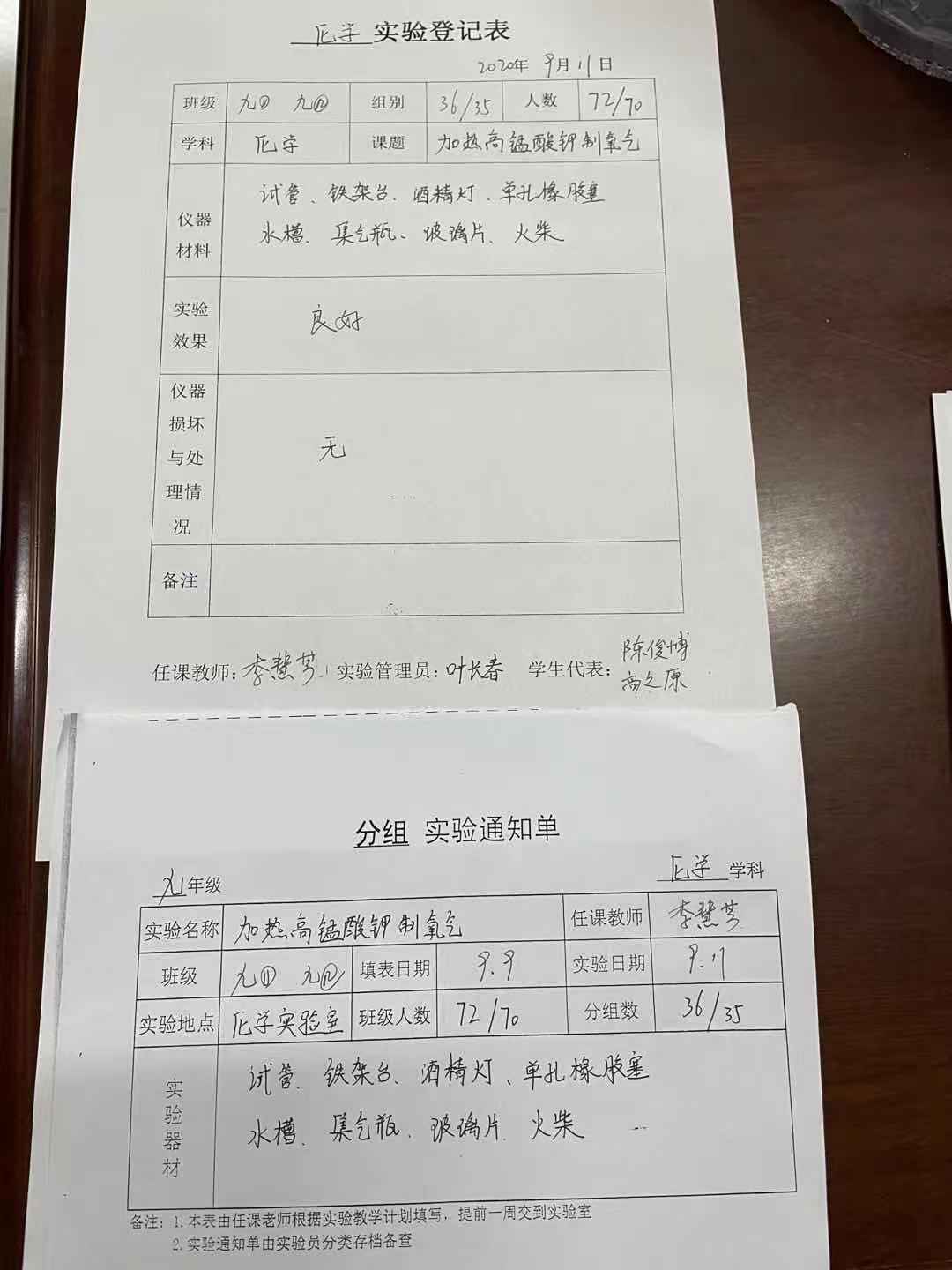 实验登记表