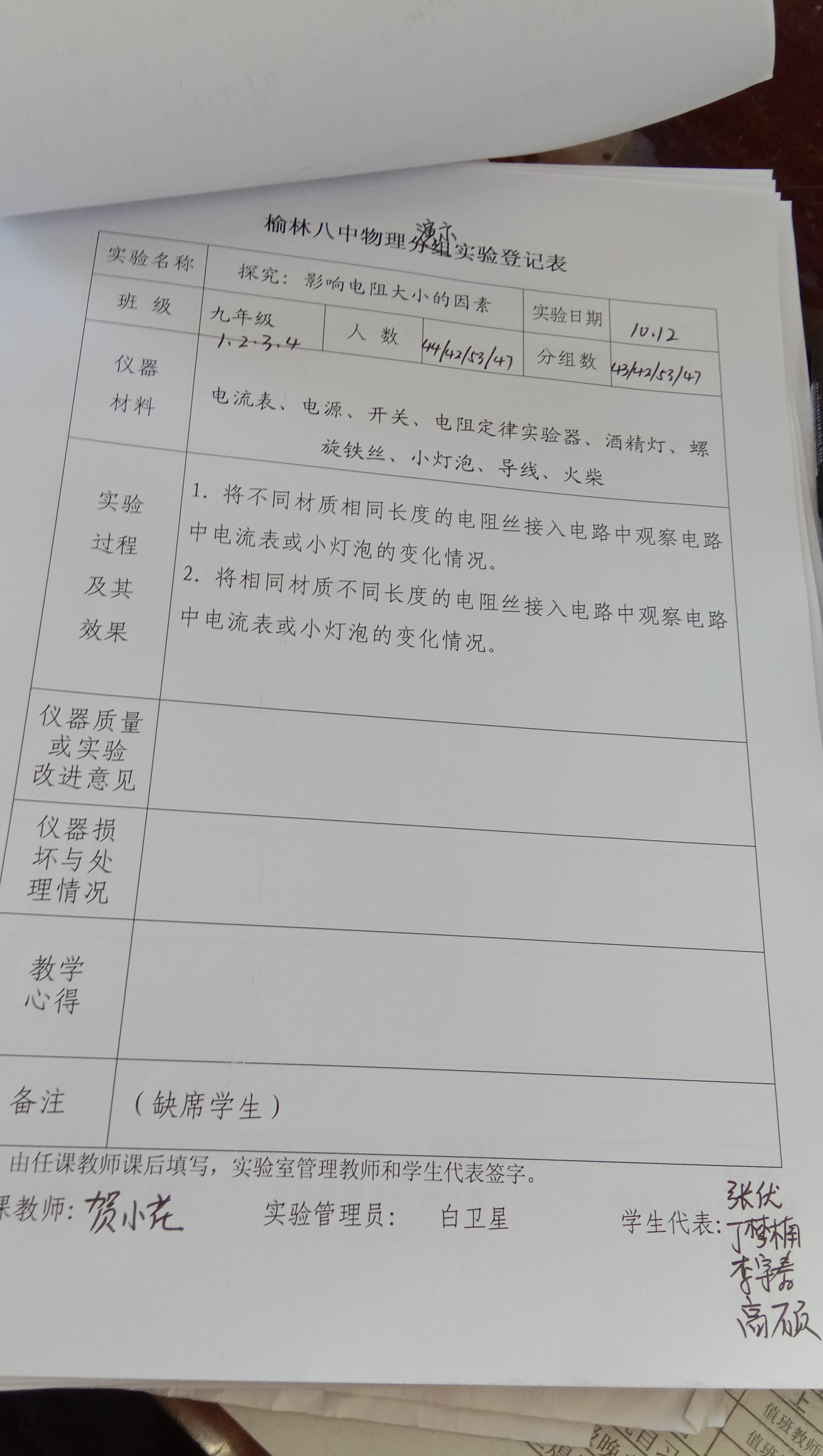 实验登记表