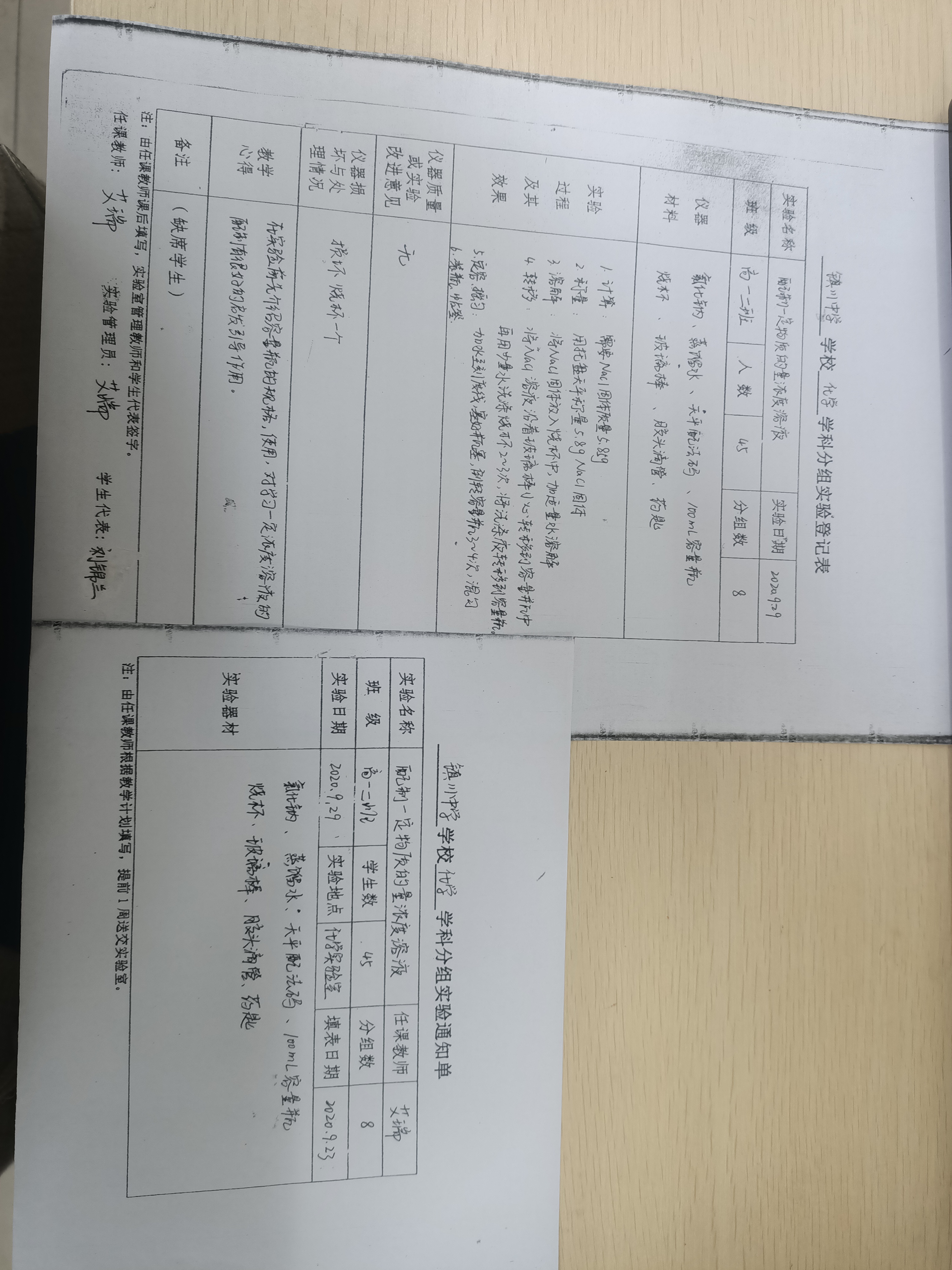 实验登记表