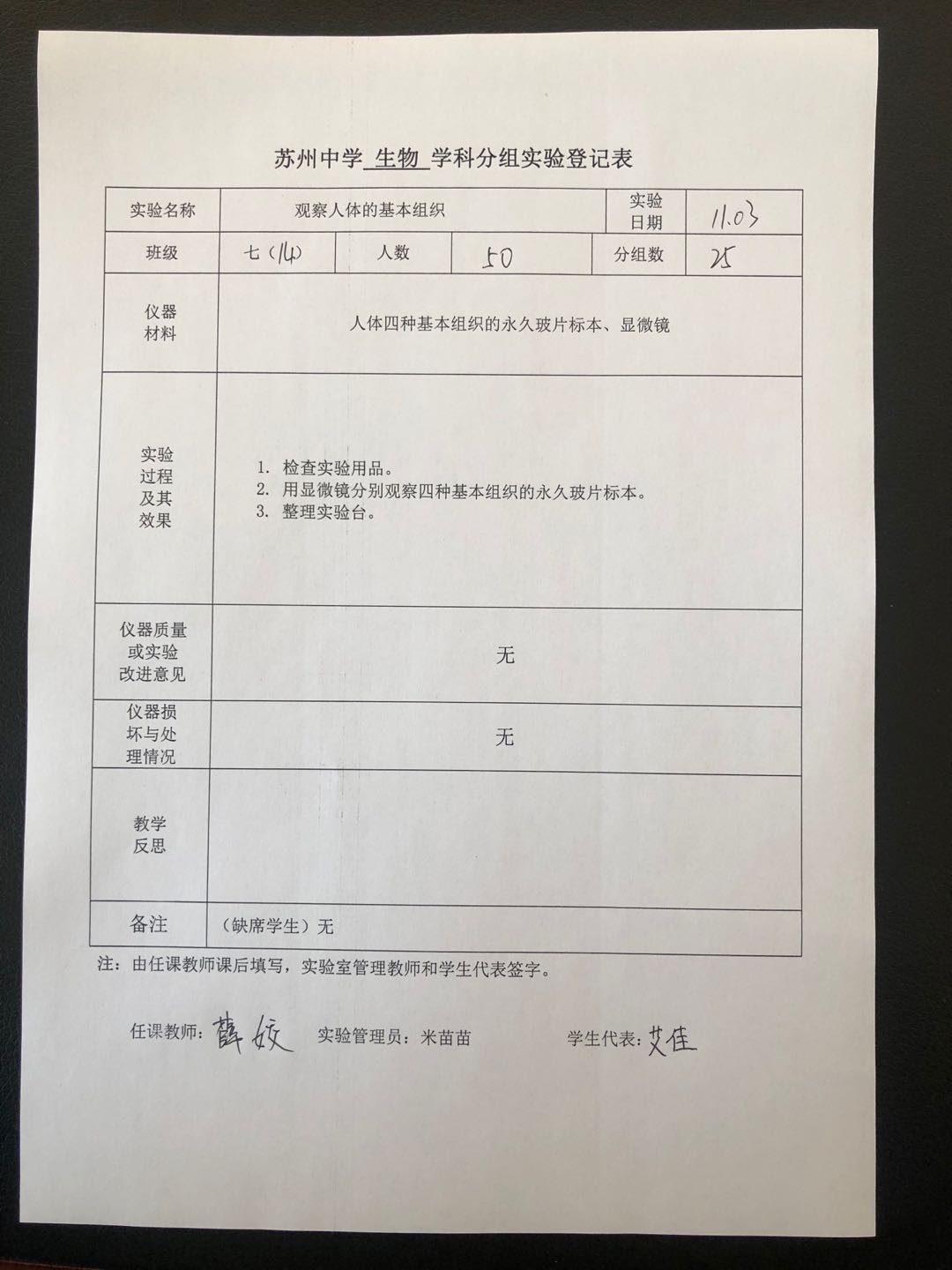 实验登记表