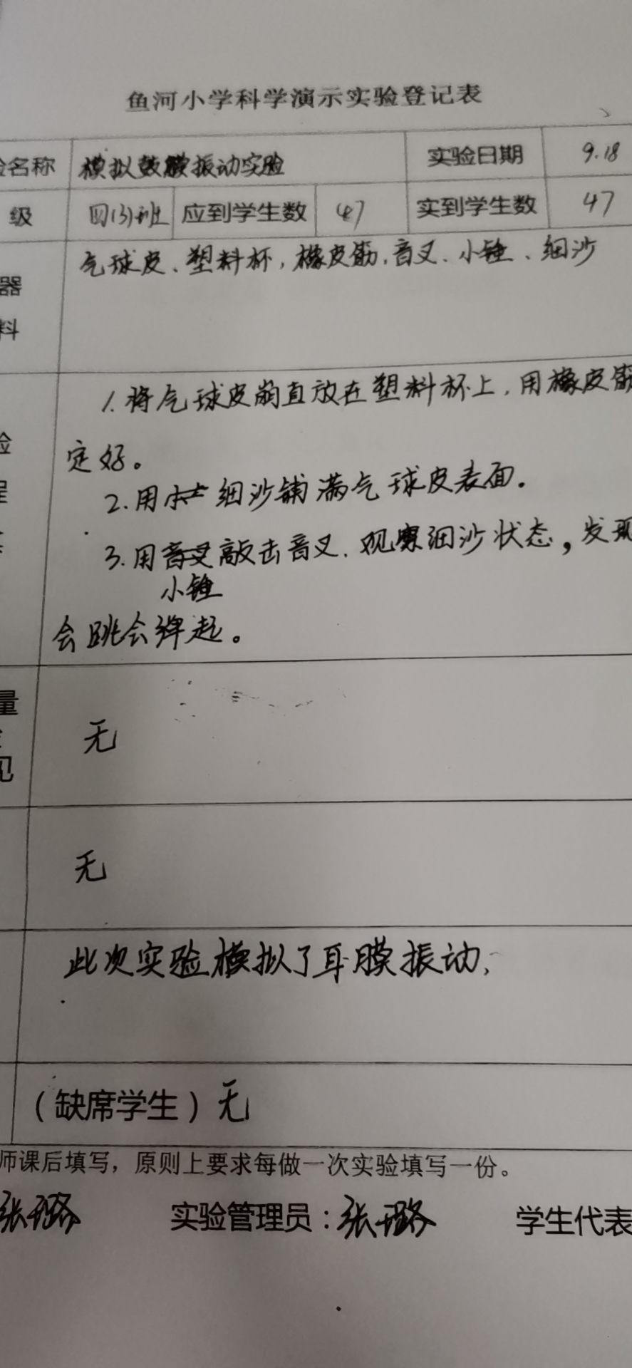 实验登记表