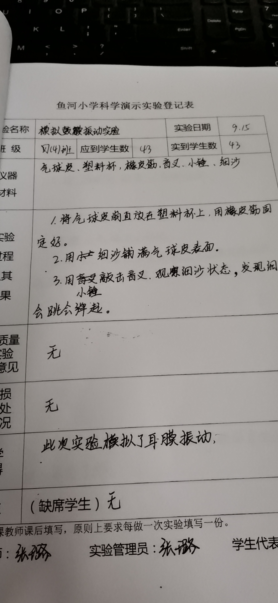 实验登记表