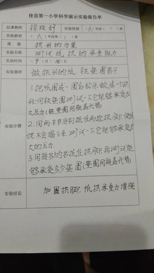 测试纸拱的承重能力