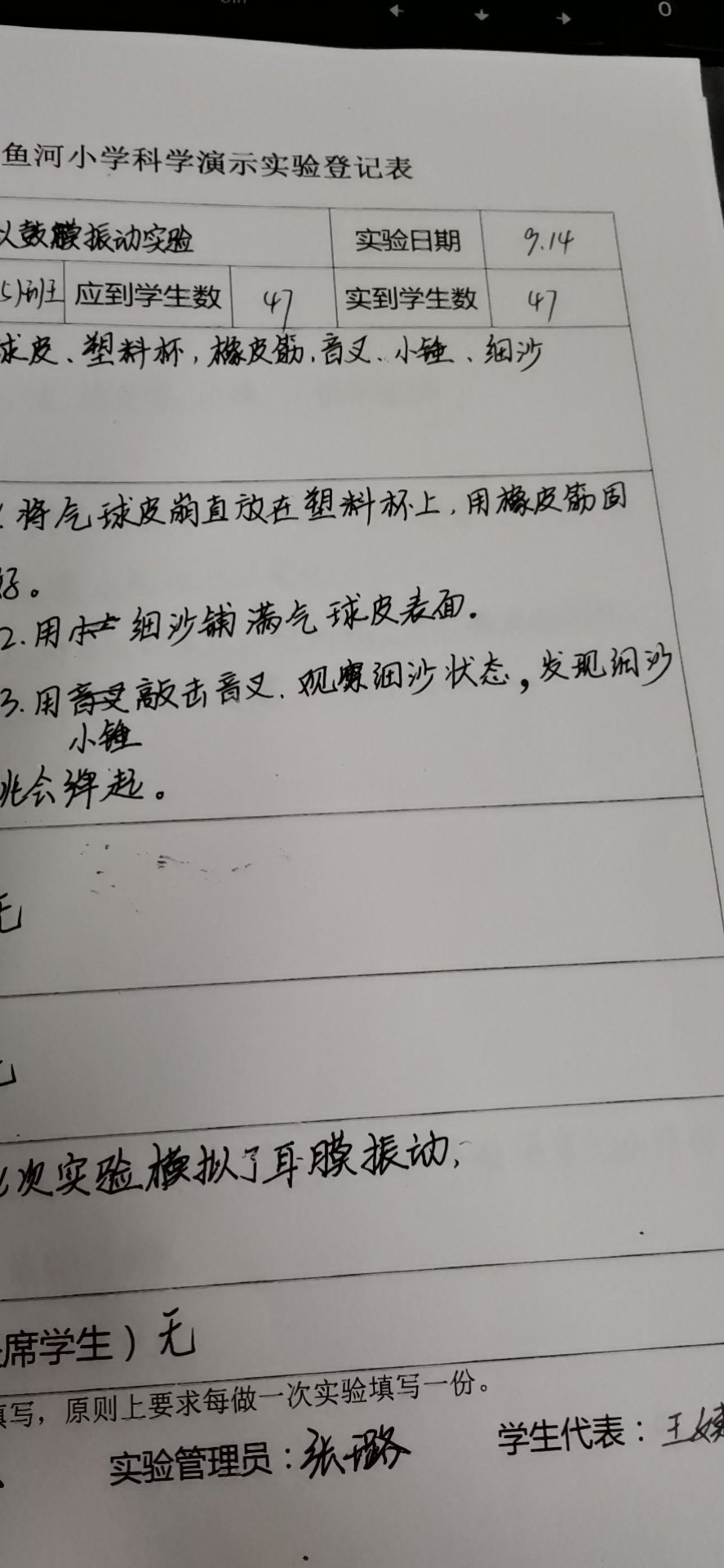 实验登记表