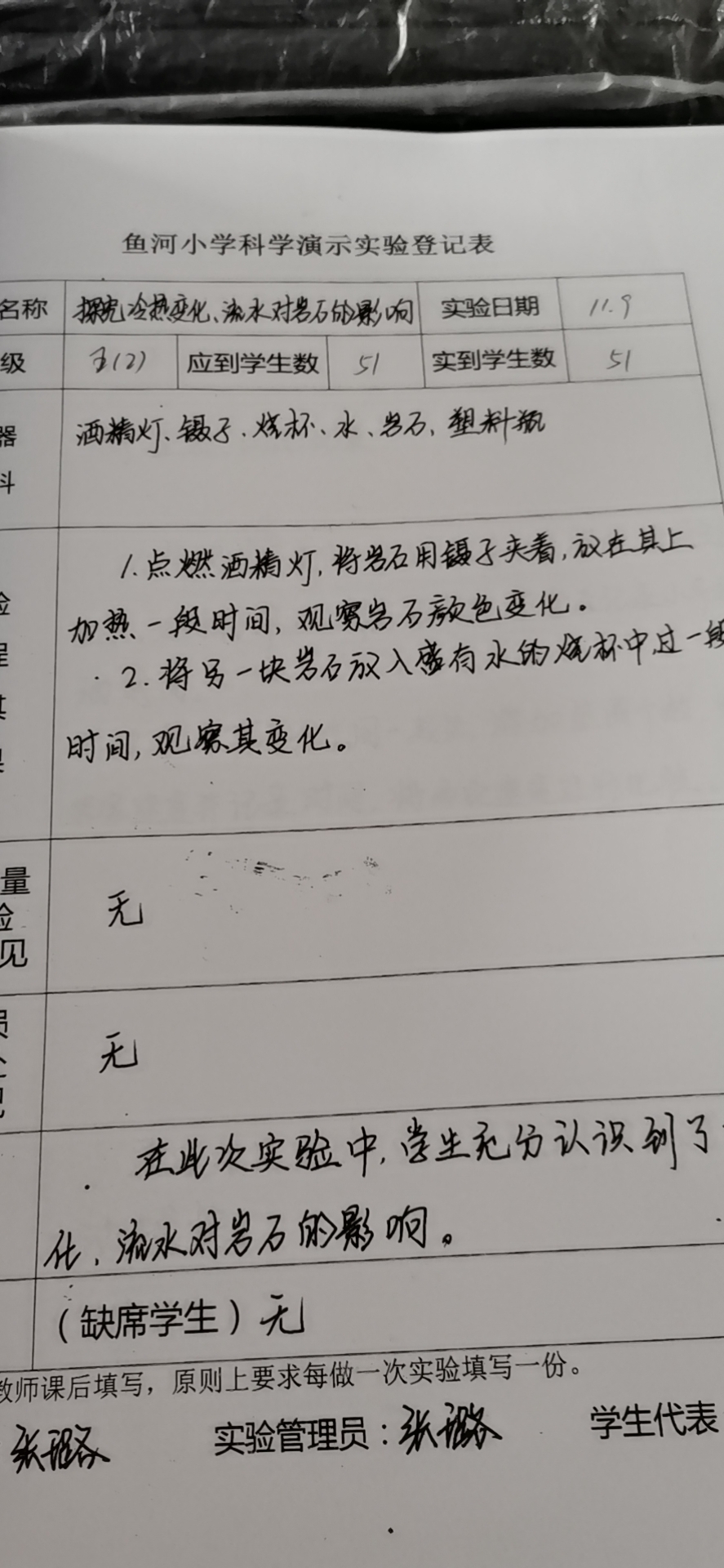 探究冷热变化、流水对岩石的影响