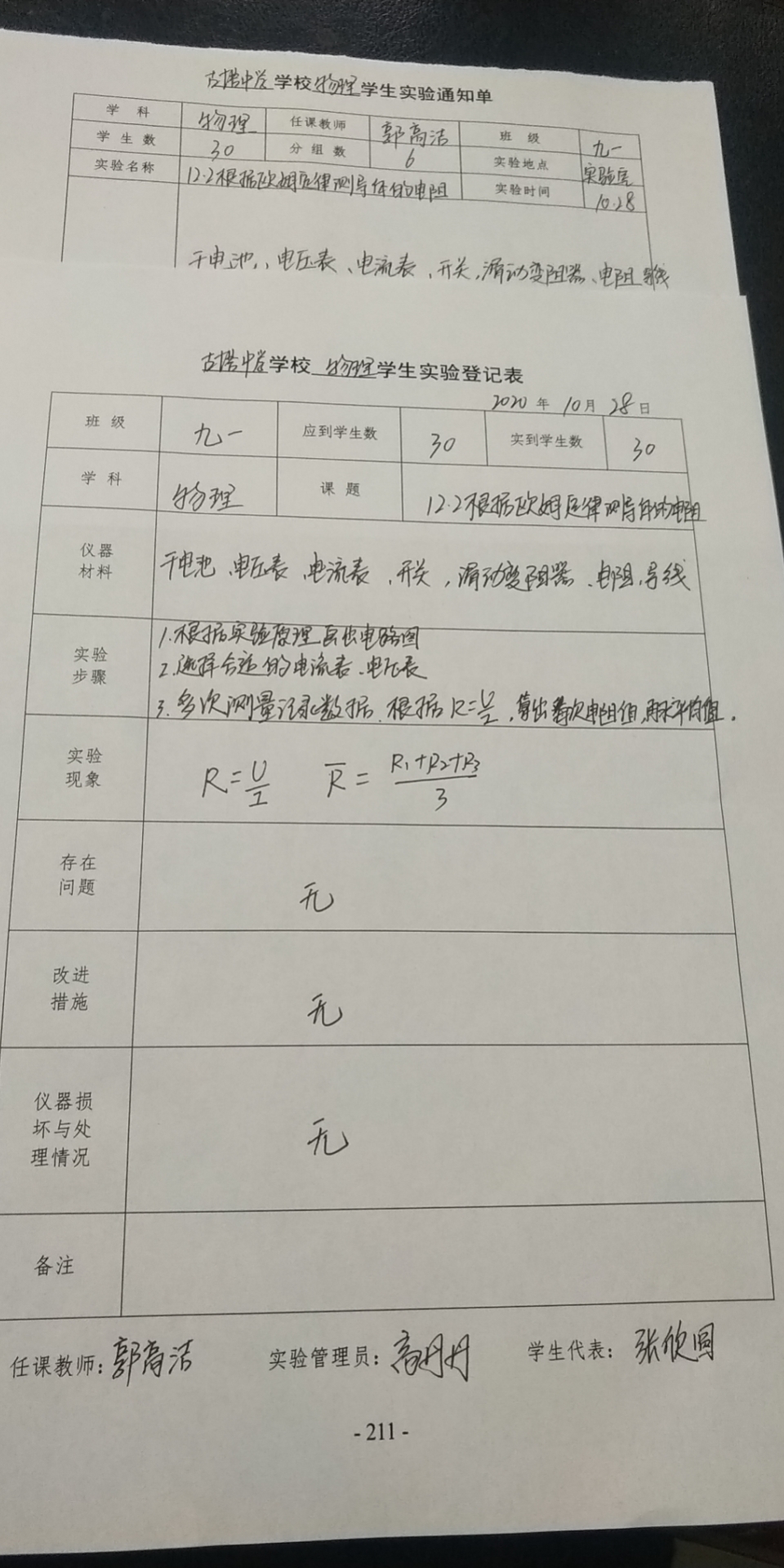 实验登记表