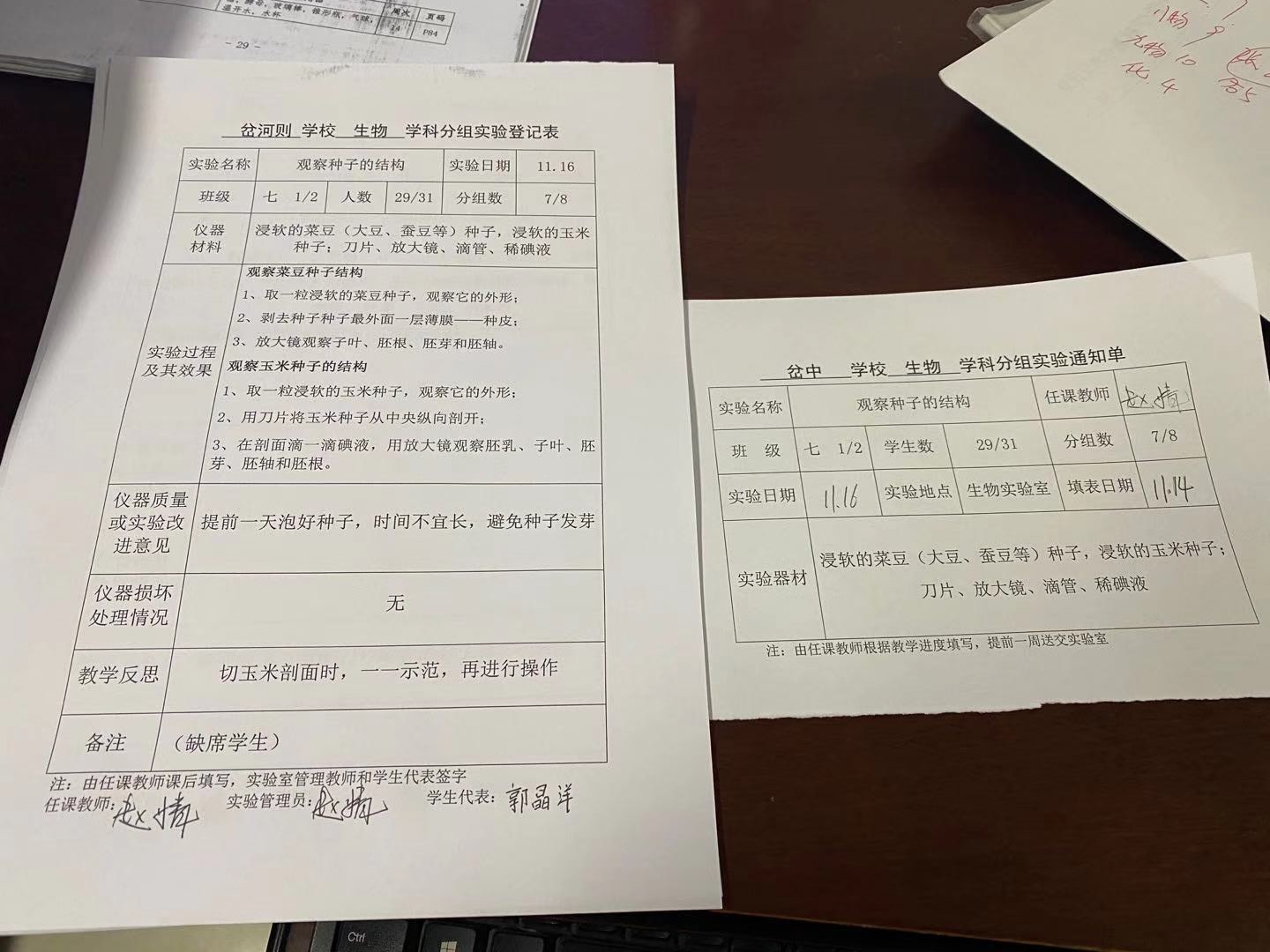 实验登记表