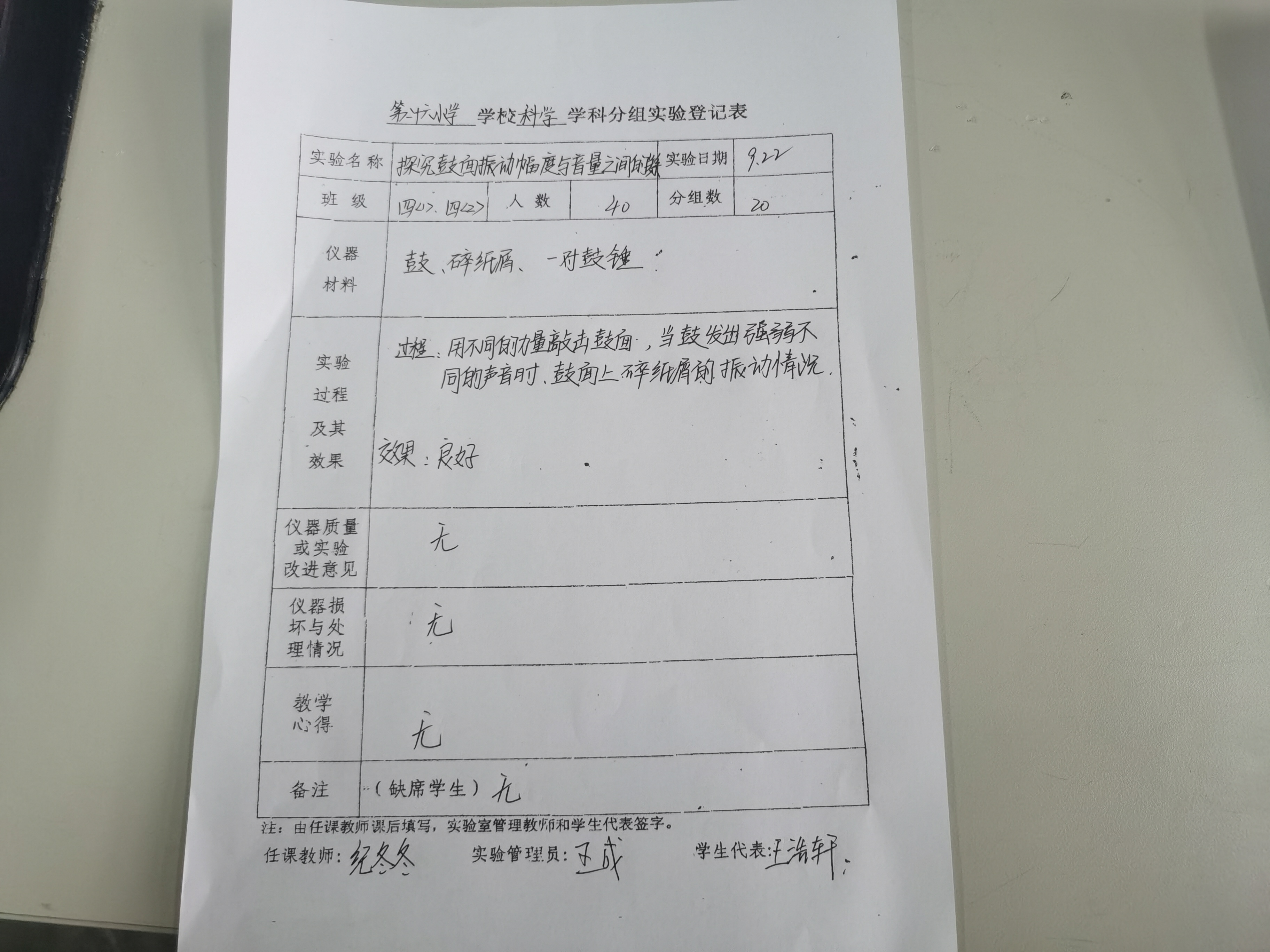 实验登记表