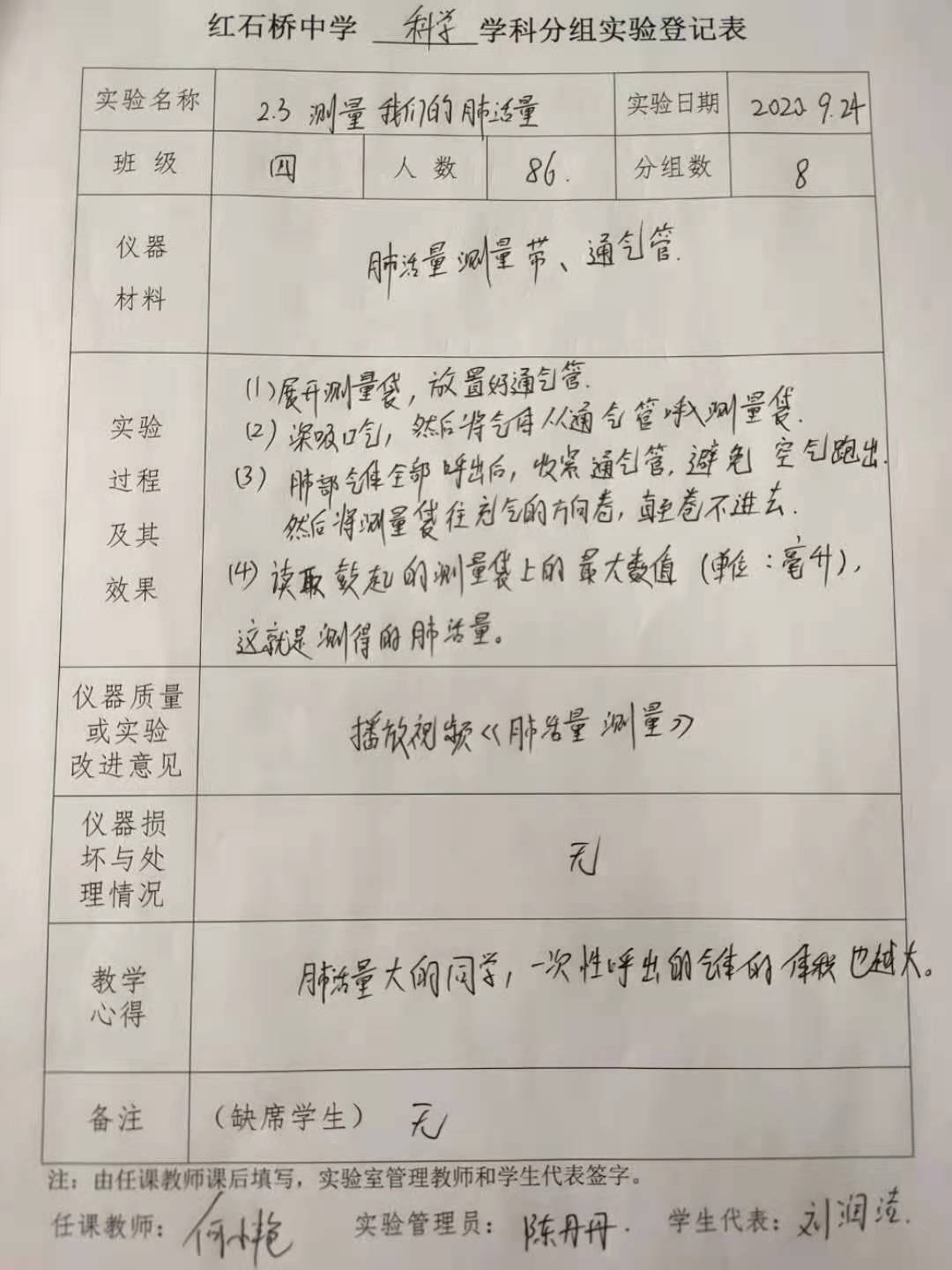 实验登记表