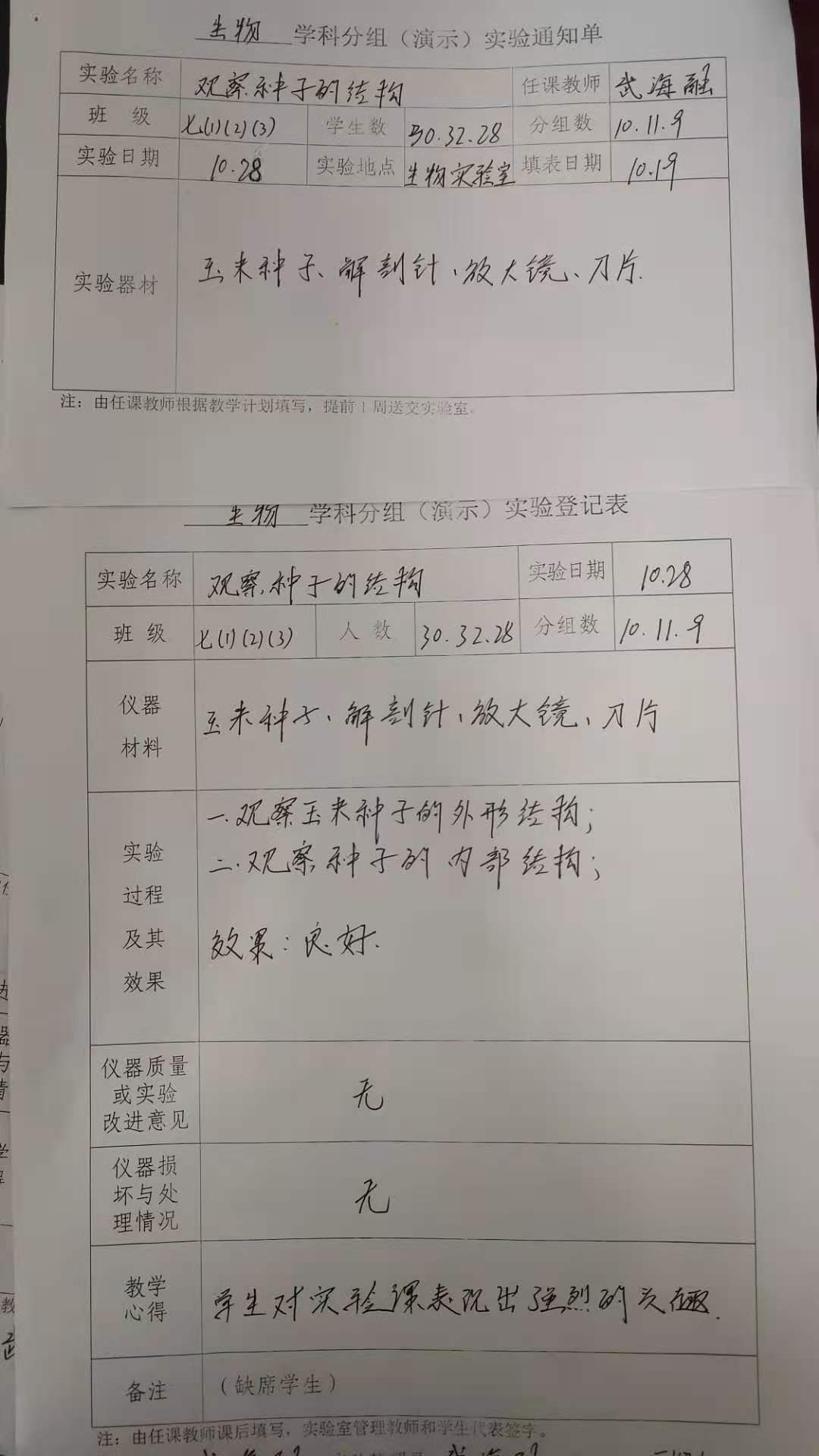 实验登记表