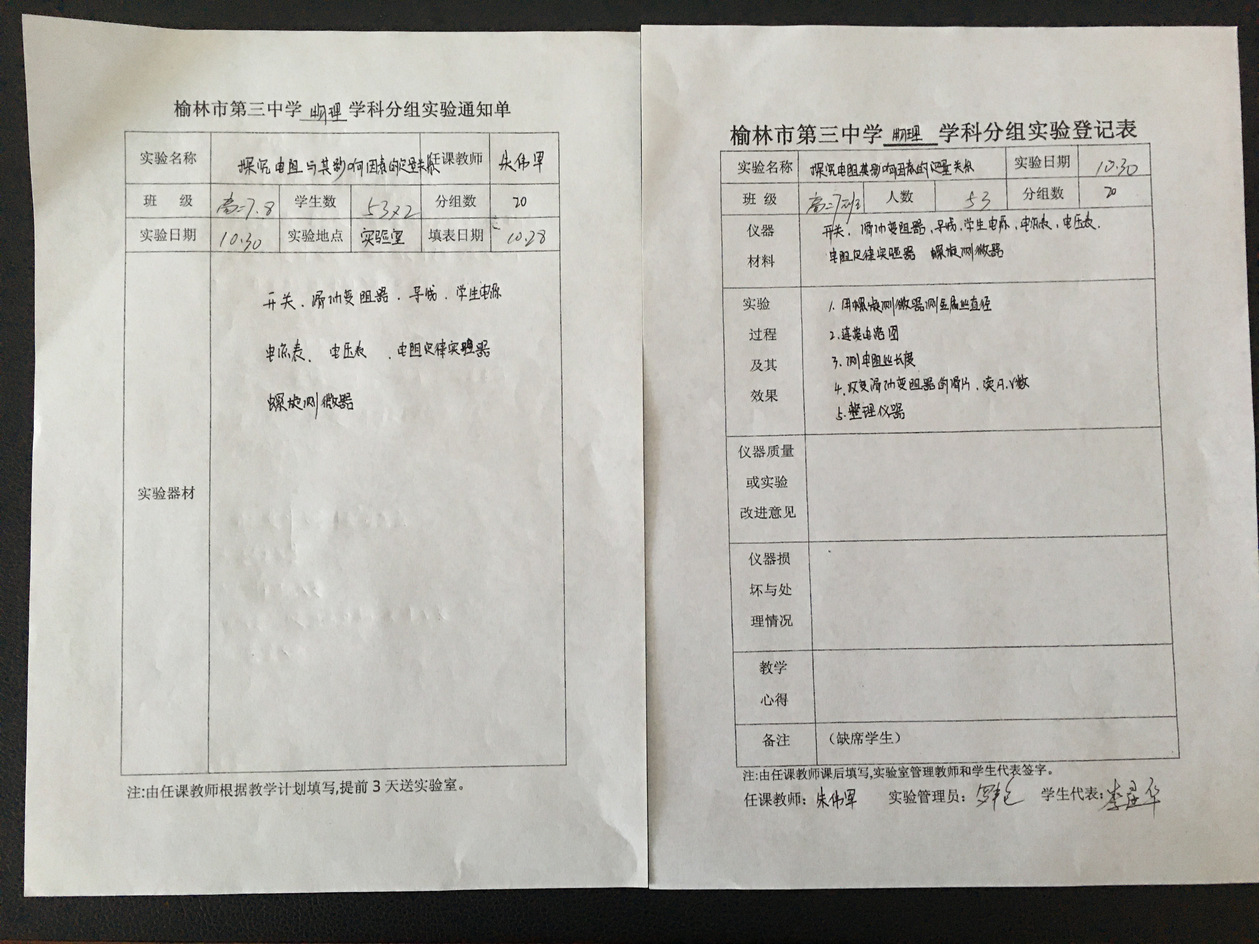 实验登记表