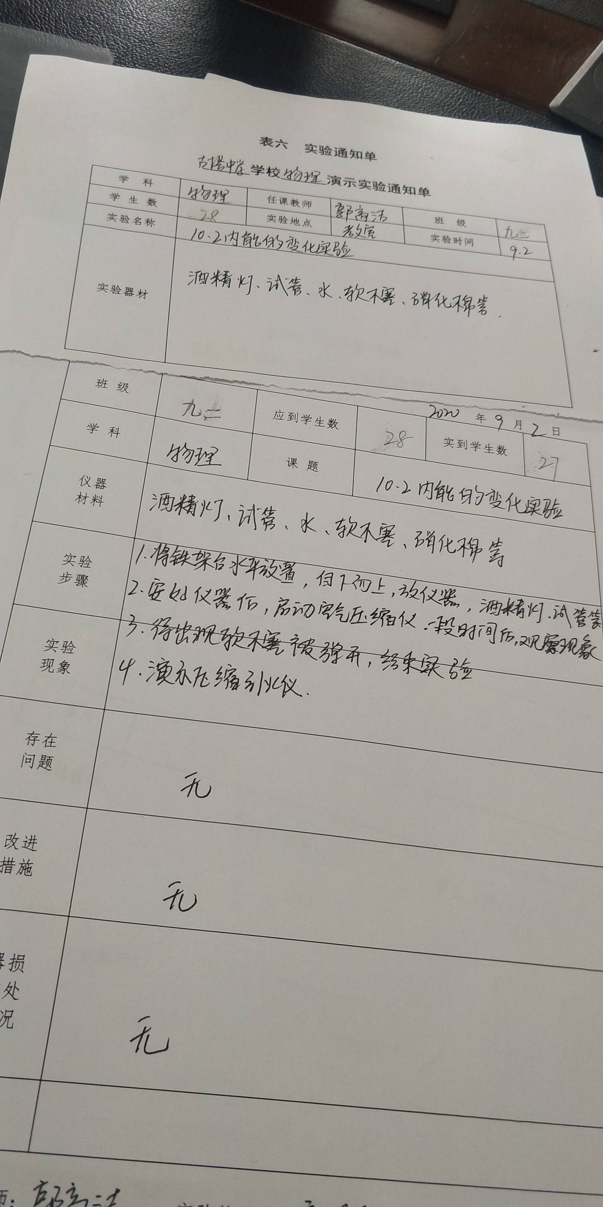 10.2内能的变化实验2班
