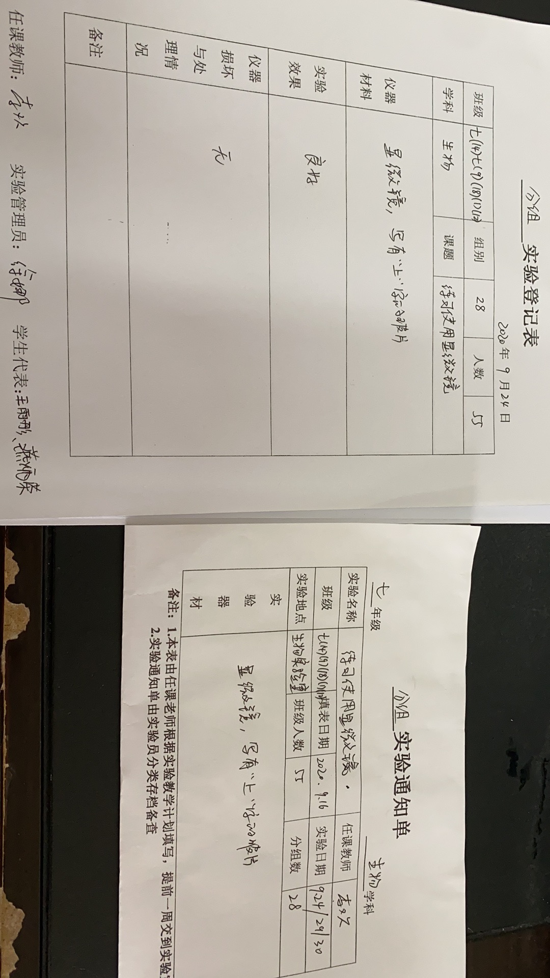 实验登记表