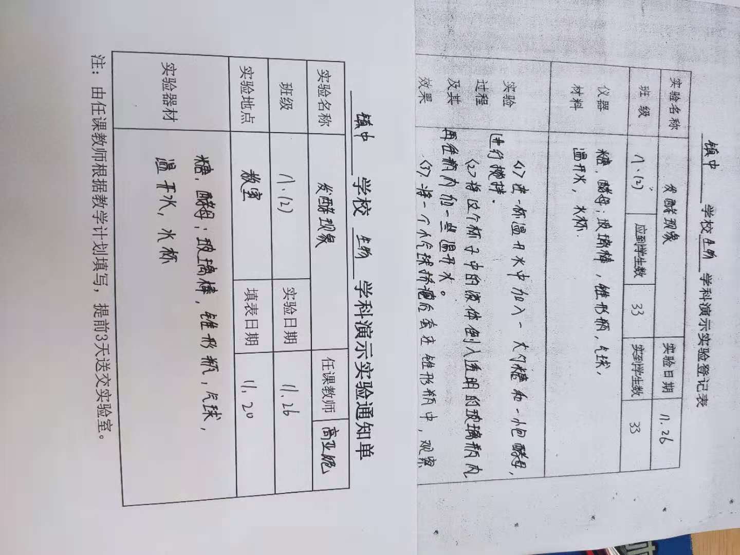 实验登记表