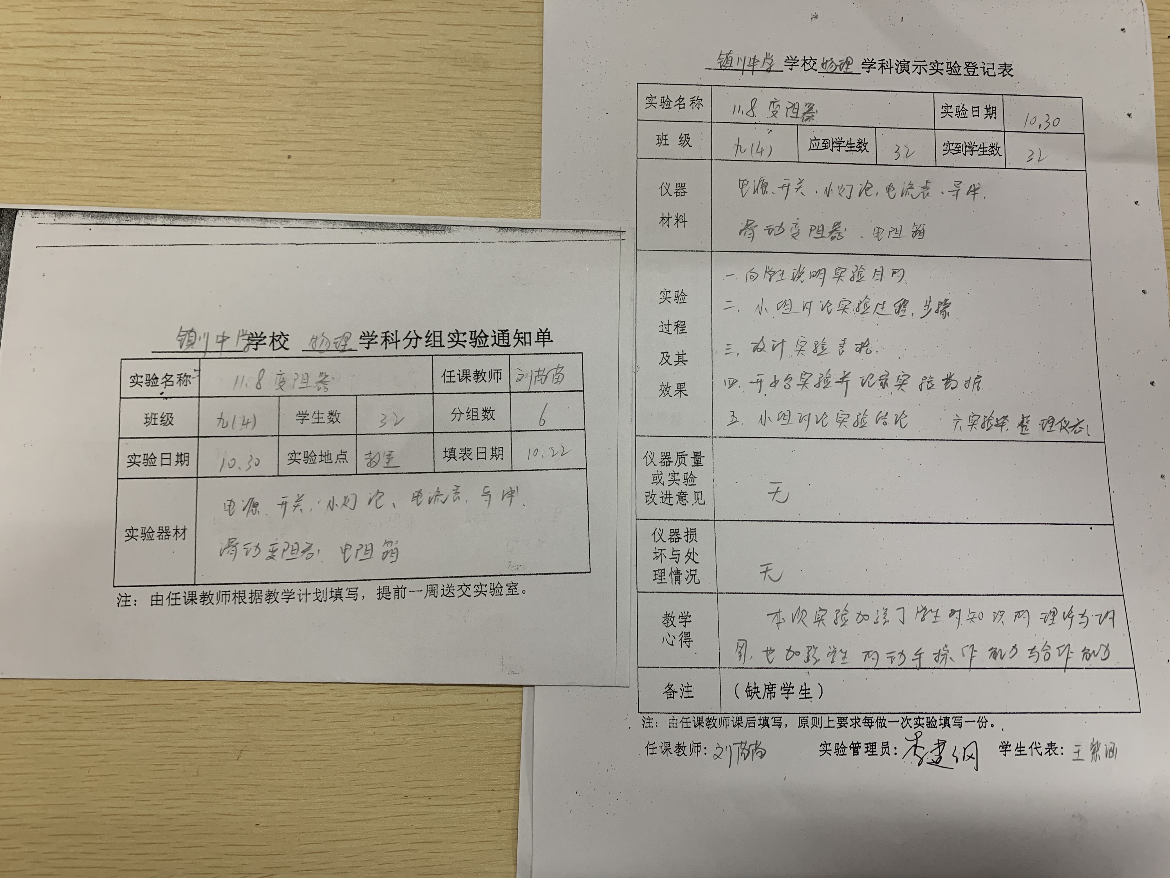 实验登记表
