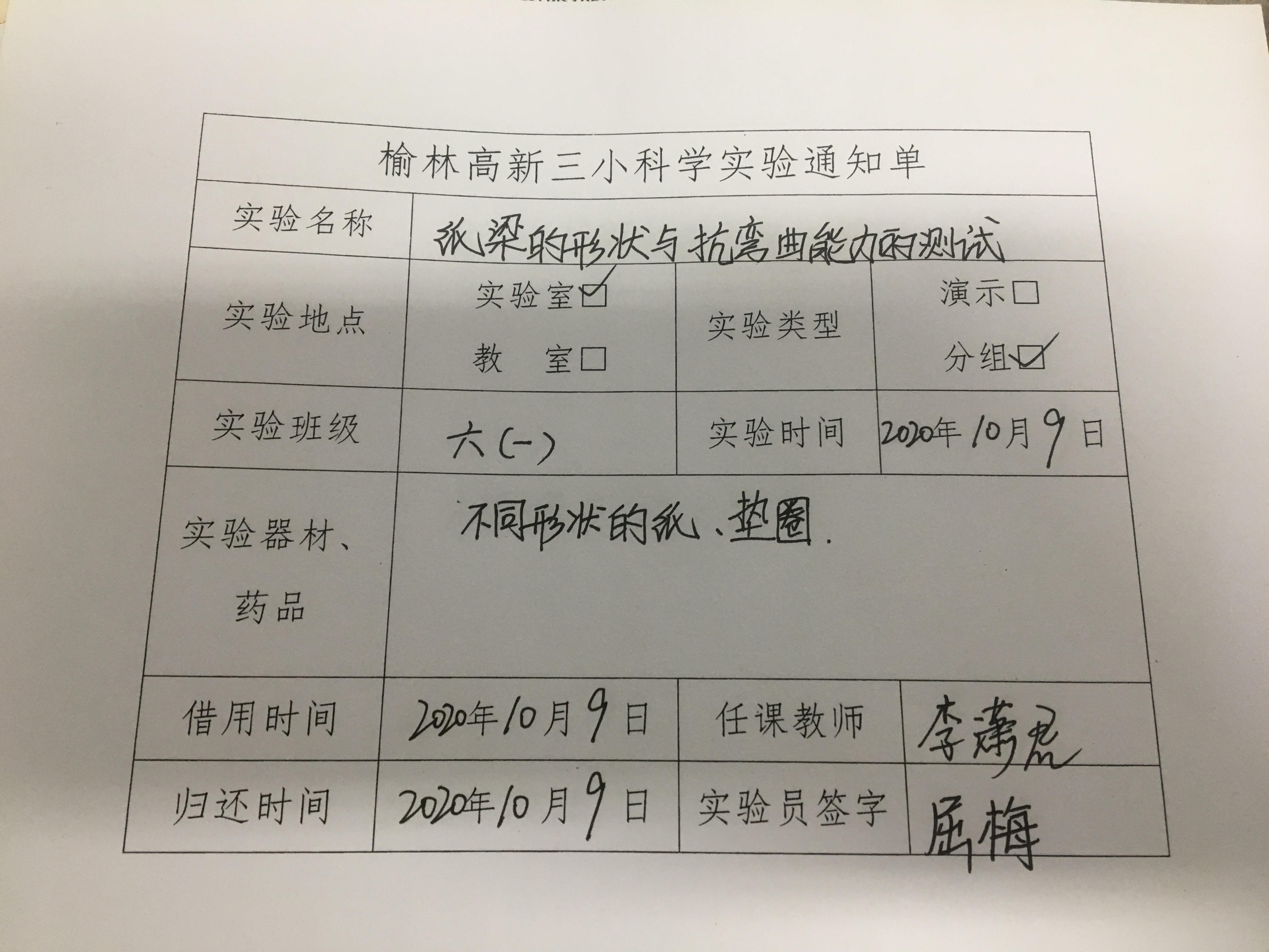 实验登记表