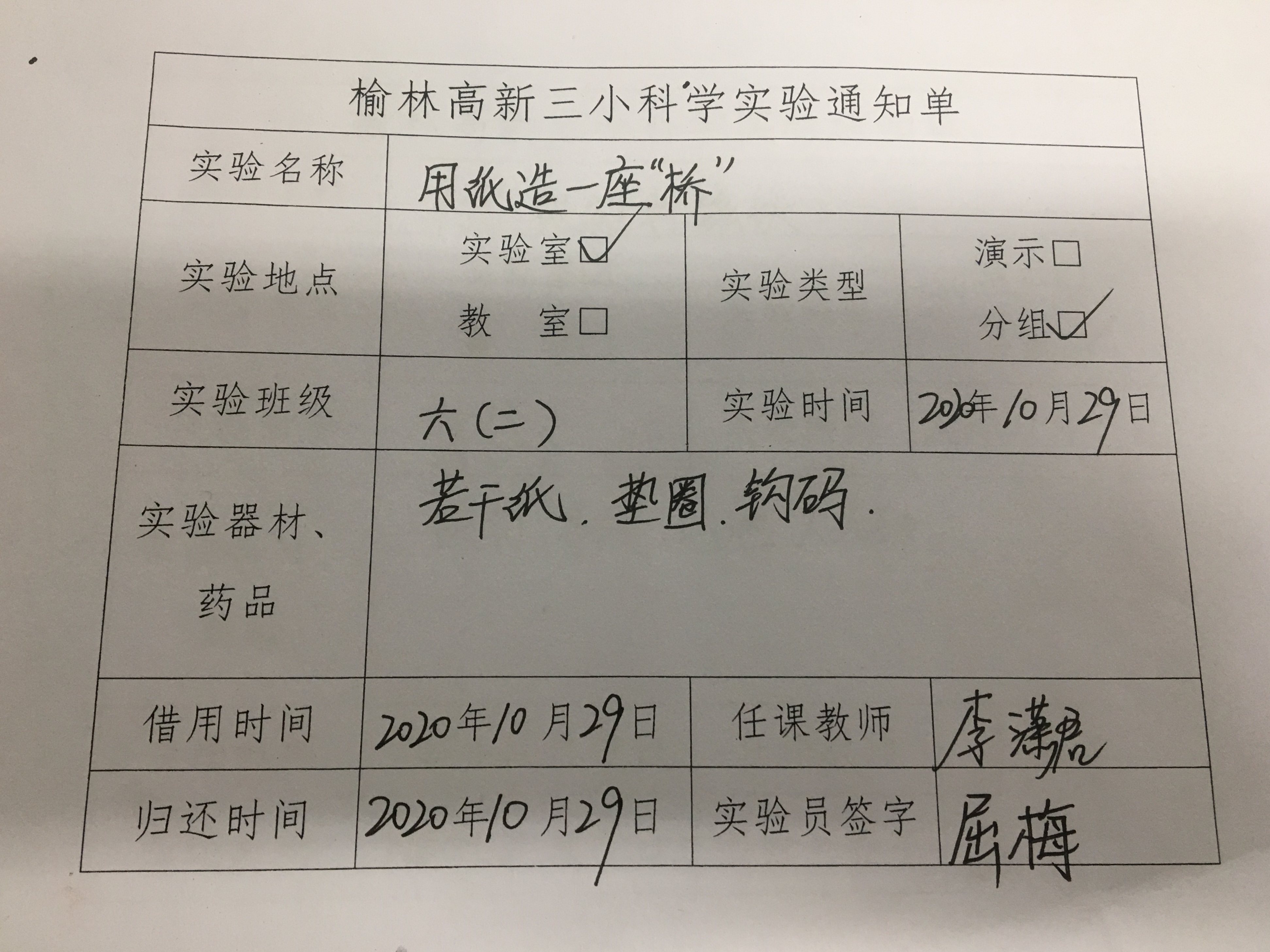 实验登记表