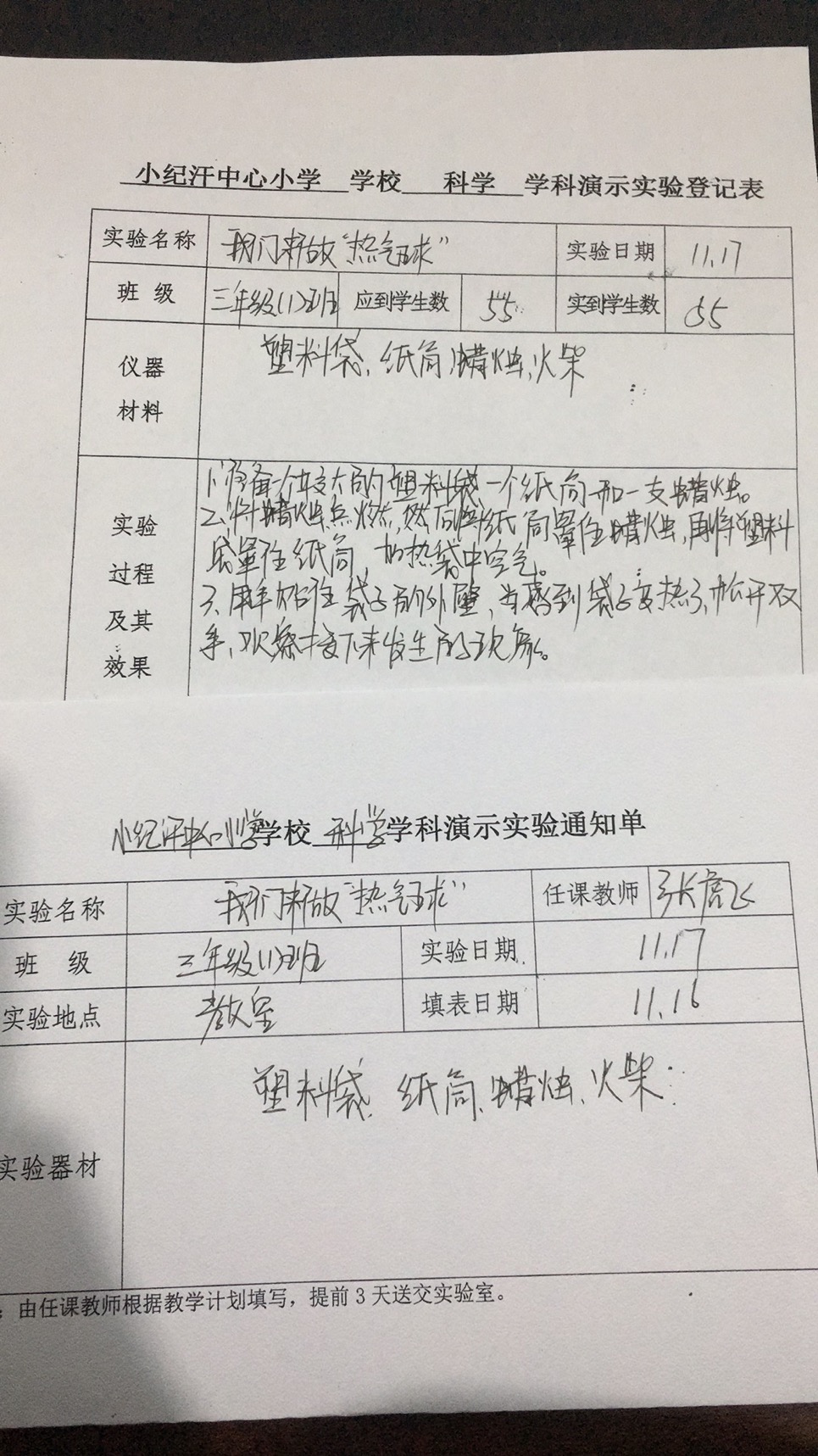 实验登记表