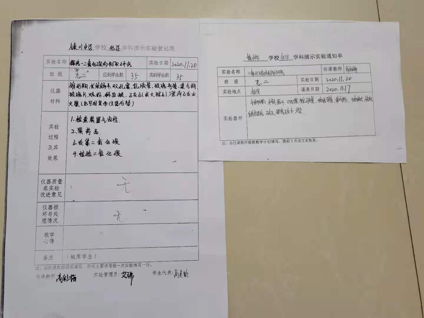 实验登记表
