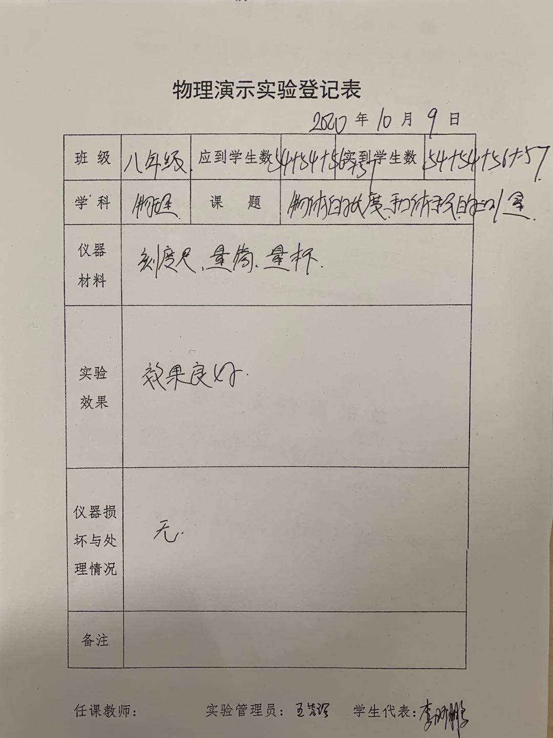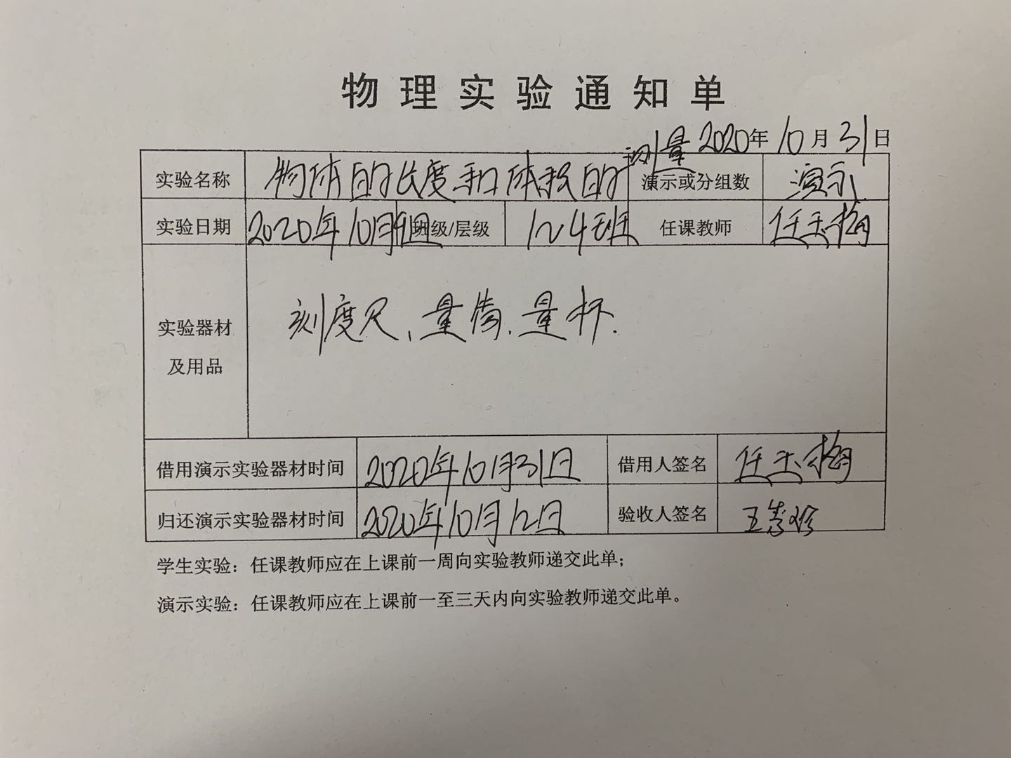 实验登记表