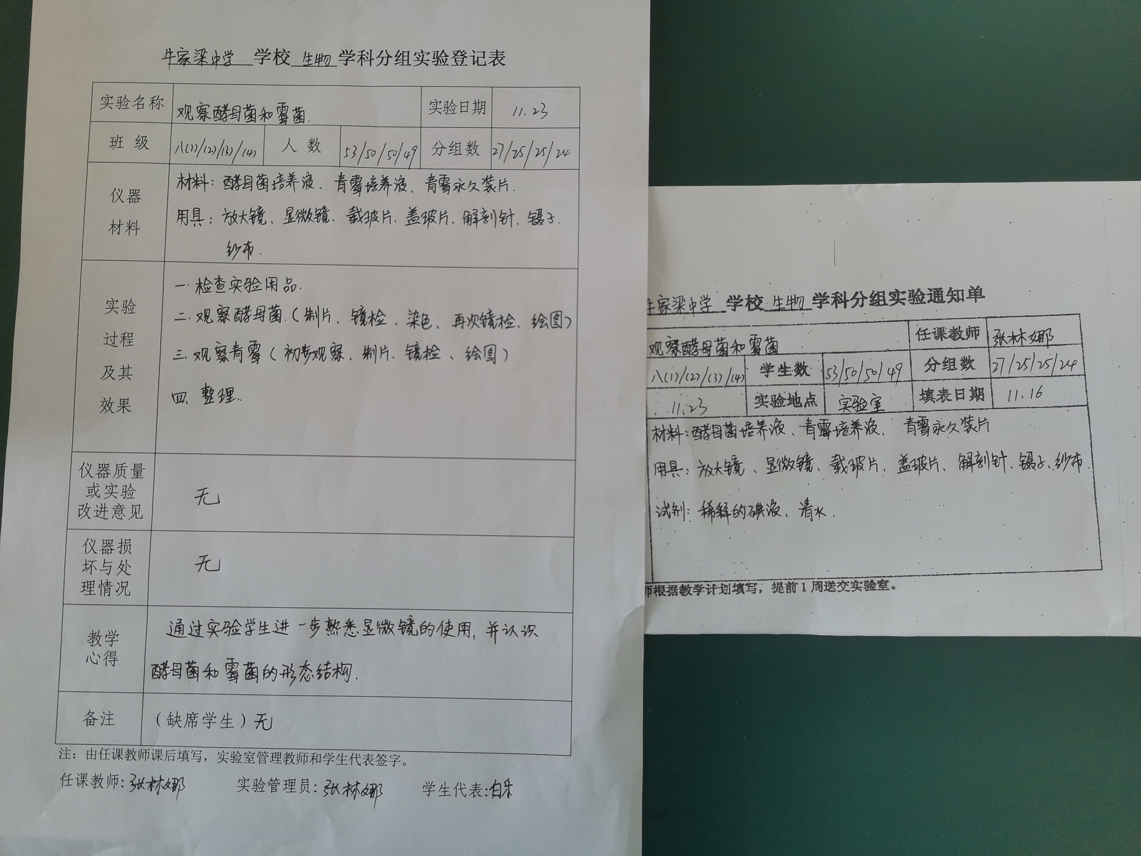 实验登记表